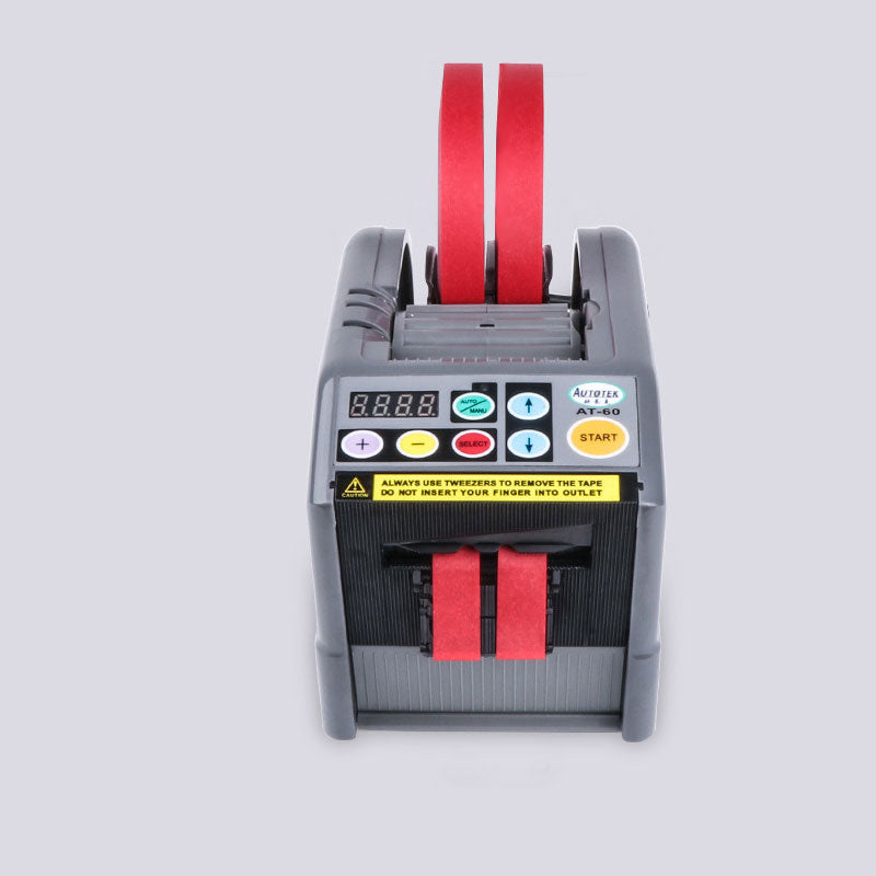 - Cutting Width and Length: The automatic tape cutter can hold two rolls of tape at the same time. Tape cutting width: 0.2"-2.4" (6-60 mm), and cutting length: 0.2"-39.3"(5-999 mm).