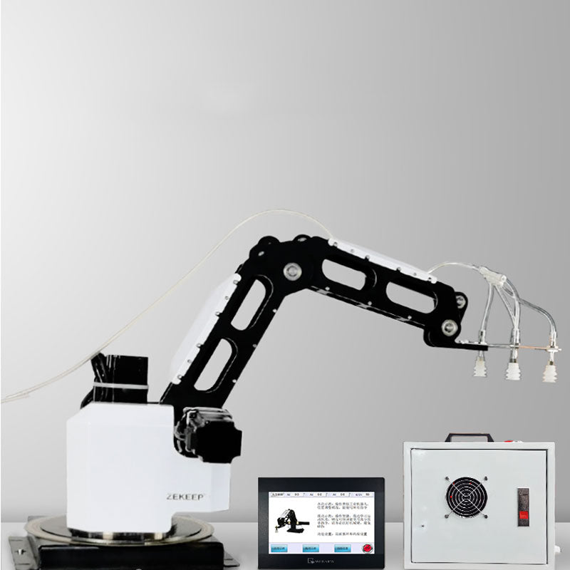 The programming function is less than that of large industrial robots, and only from programming and learning the use of robots can be used as introductory teaching training. Drawing lessons from the use habits, programming habits, and programming ideas of large industrial robots, it can be used for palletizing, handling, and loading and unloading programming teaching.