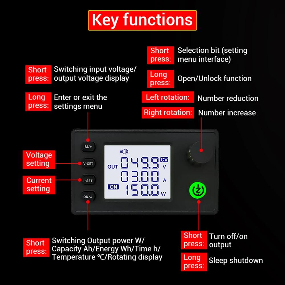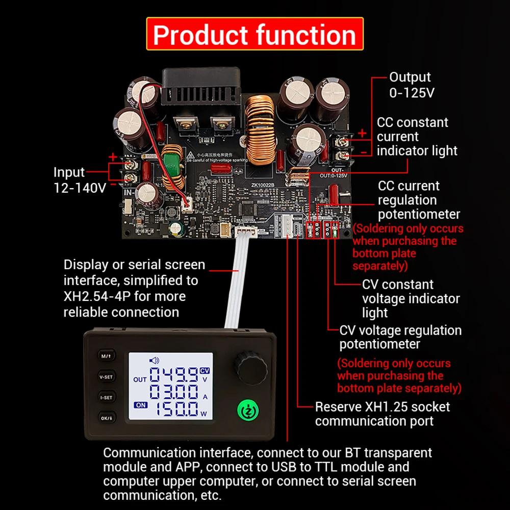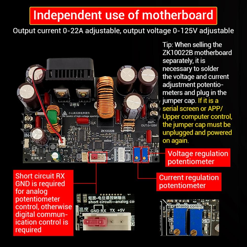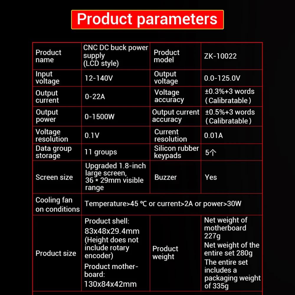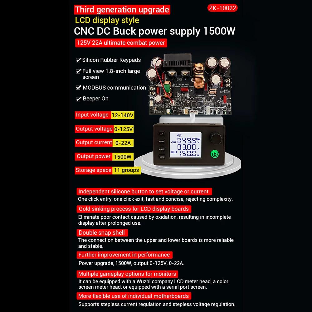 ZK-10022 1500W CNC Buck-converter DC Adjustable Stabilized Voltage Power Supply Module 125V/22A with 1.8-inch LCD