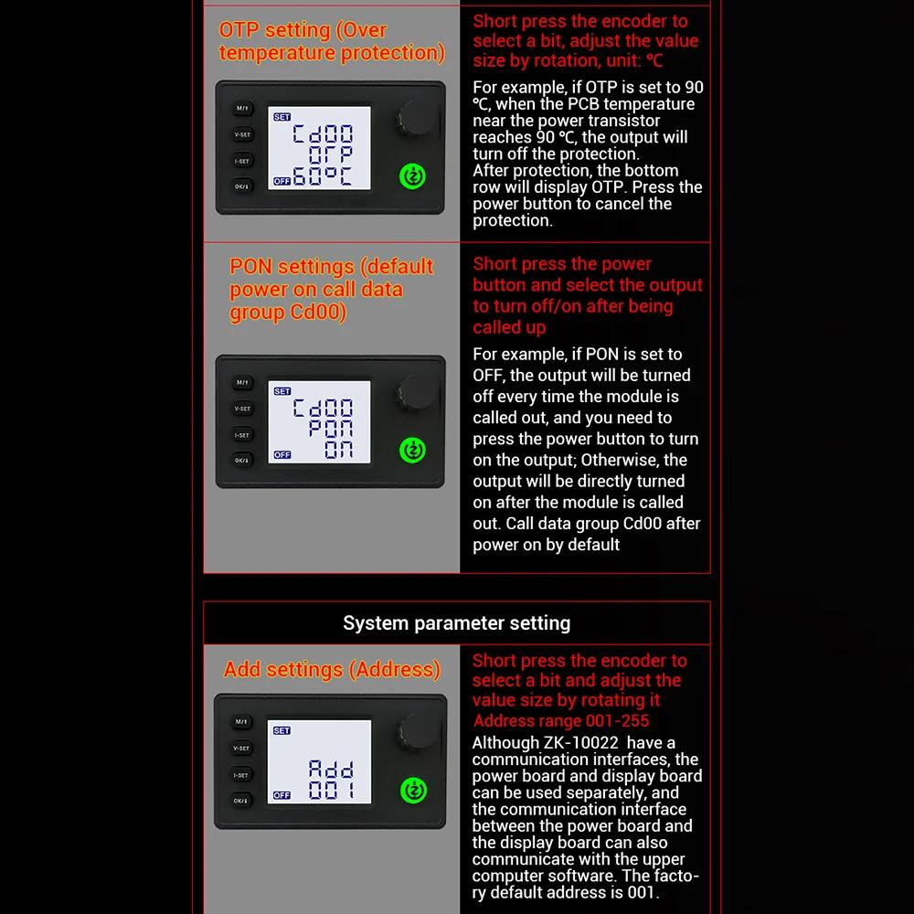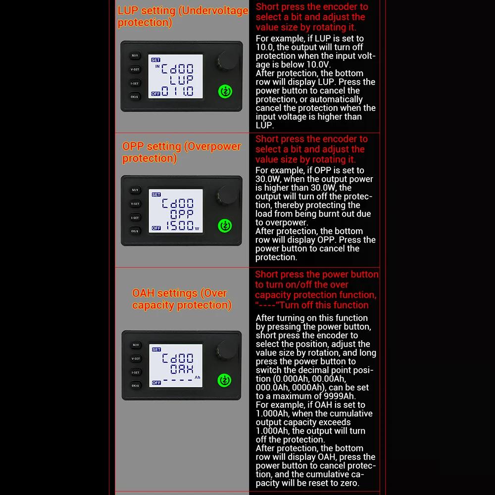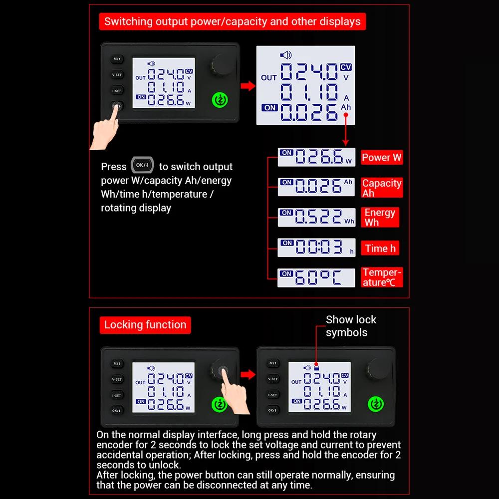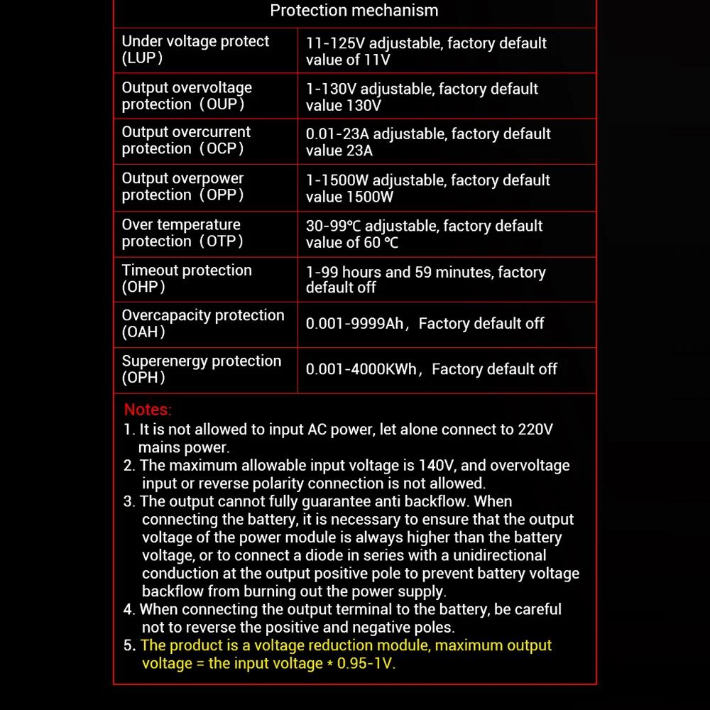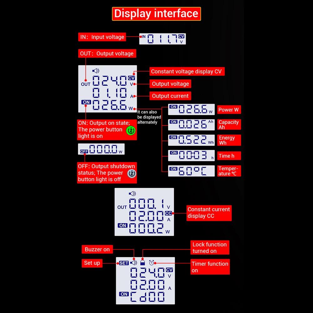 ZK-10022 1500W CNC Buck-converter DC Adjustable Stabilized Voltage Power Supply Module 125V/22A with 1.8-inch LCD