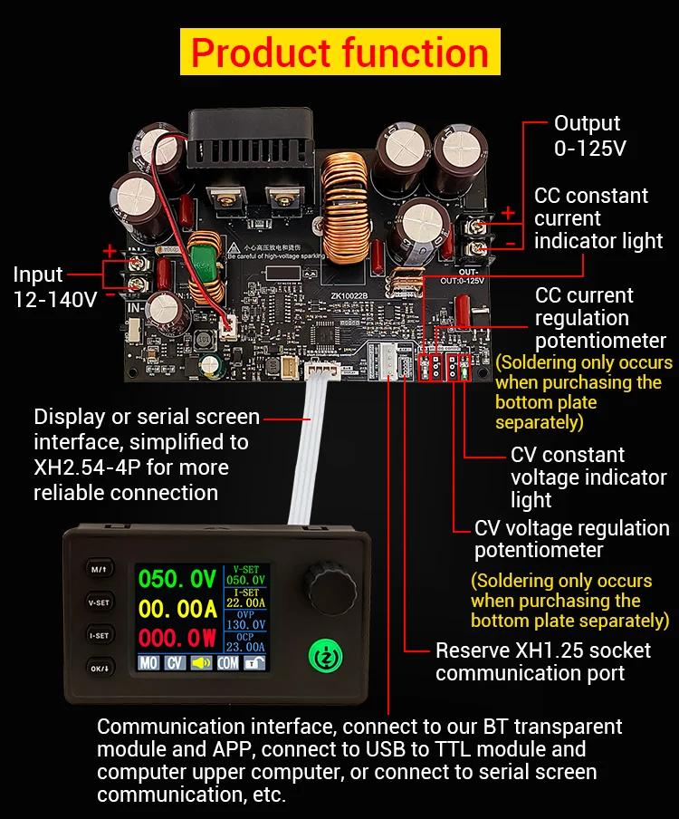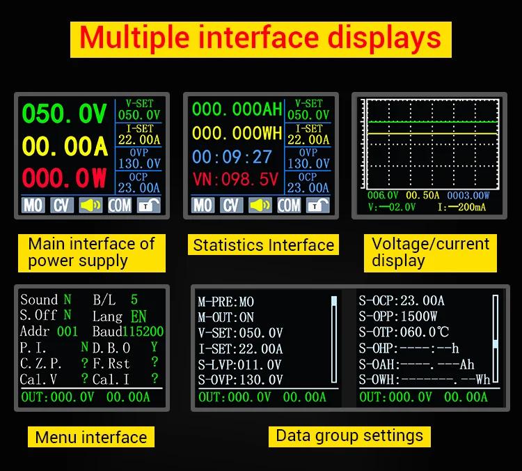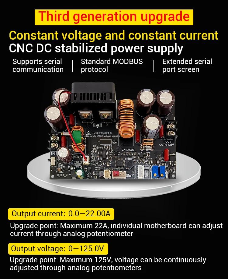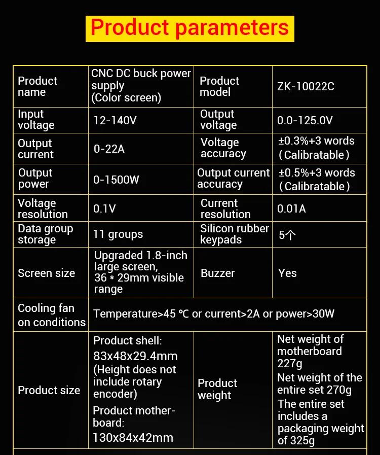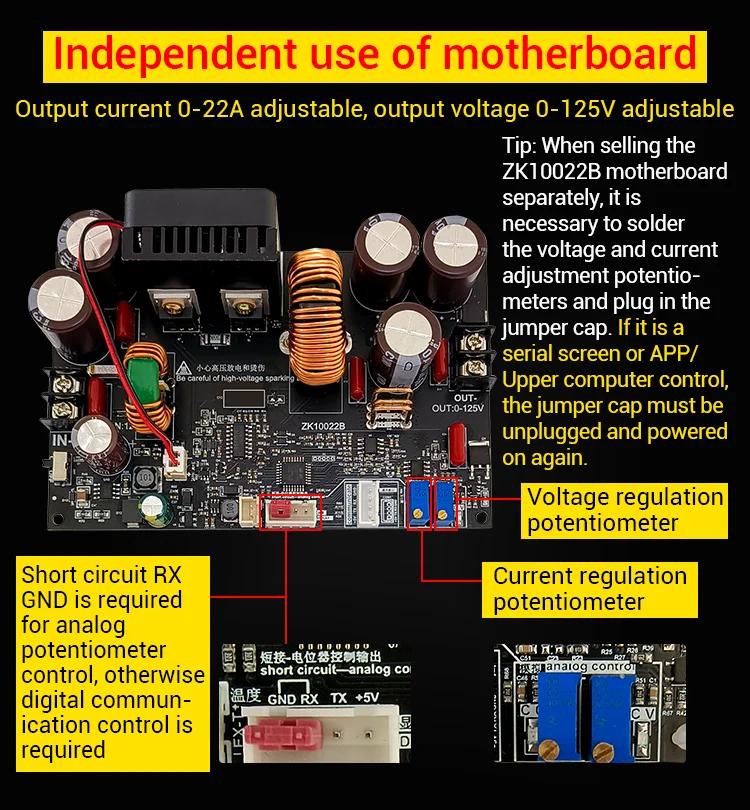 ZK-10022C CNC DC Buck Converter 1500W Step-down Power Module 125V 22A Power Supply with 1.8-inch Color Screen