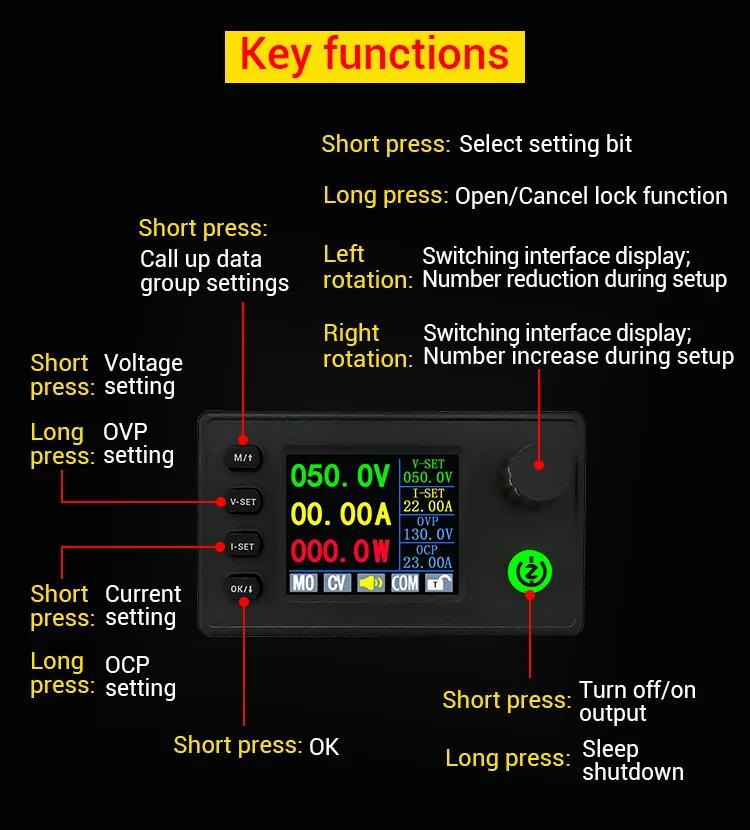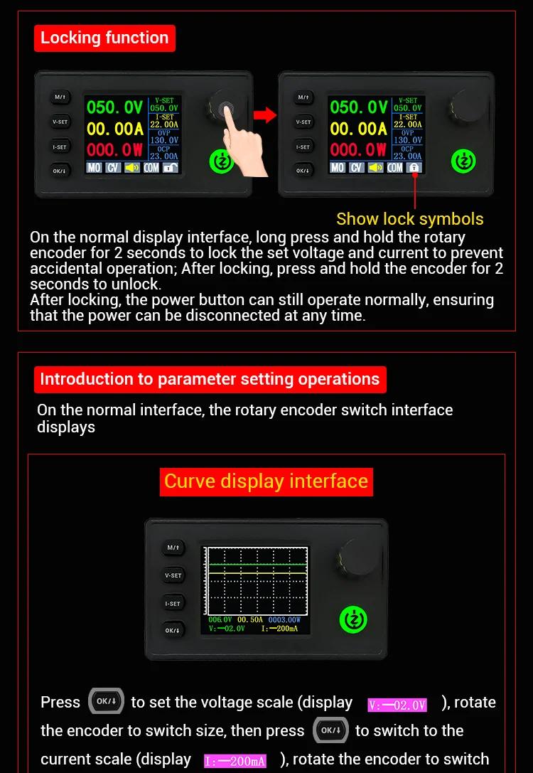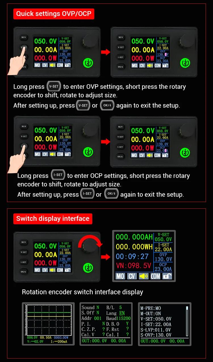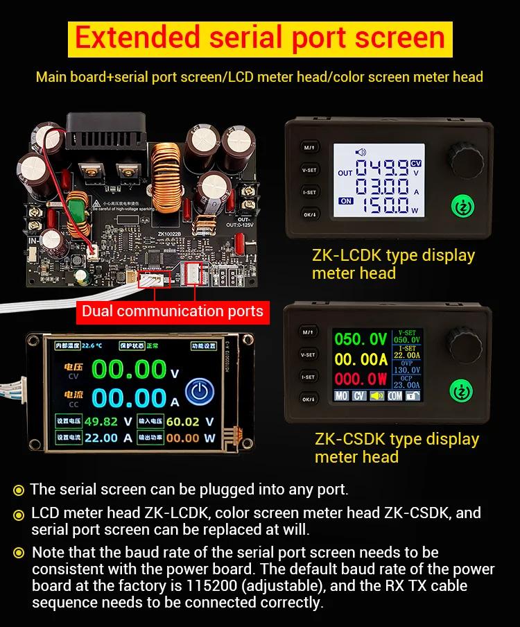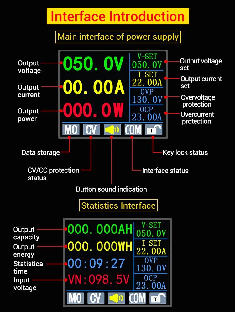 ZK-10022C CNC DC Buck Converter 1500W Step-down Power Module 125V 22A Power Supply with 1.8-inch Color Screen