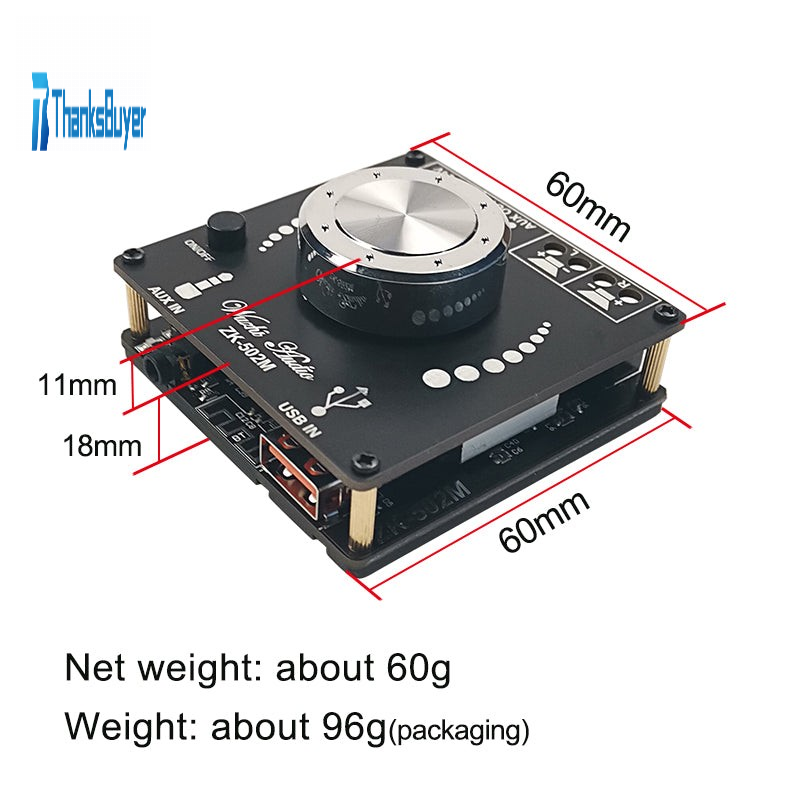 ZK-502M Mini 2.0 Stereo Digital Power Amplifier Module 50W*2 Support Multiple Inputs Unassembled