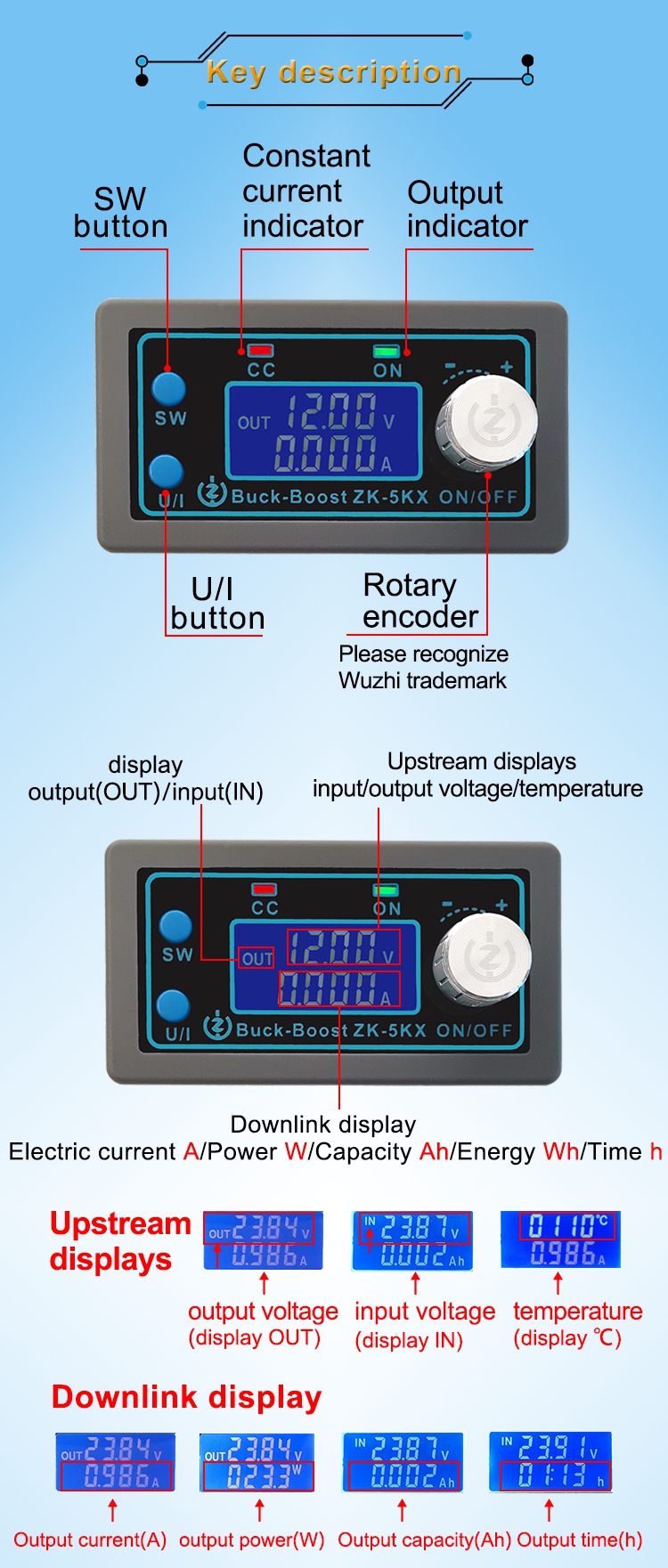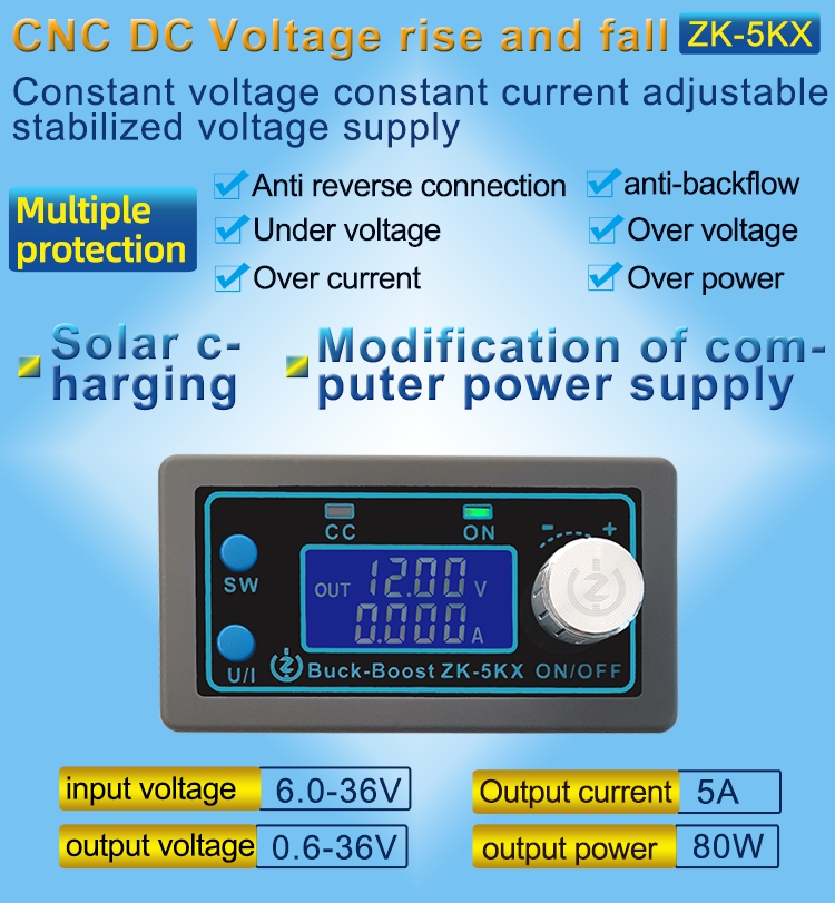 ZK-5KX Programmable Power Supply CNC DC Adjustable Regulated Power Supply CV CC In 6-36V Out 0.6-36V