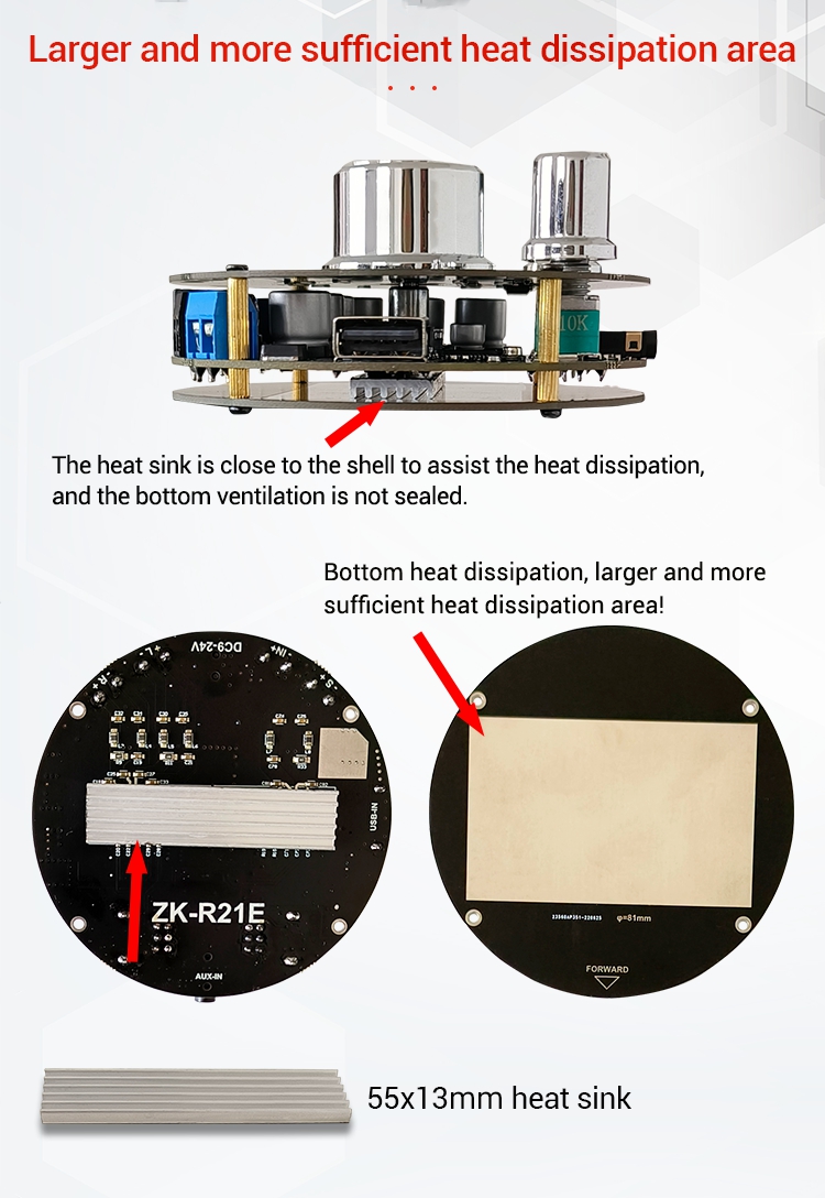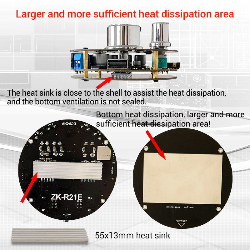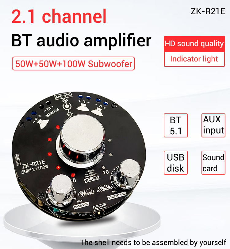 ZK-R21E Subwoofer Amplifier Bluetooth Amp Board 2.1 Channel Amplifier with Cool Volume Indicator