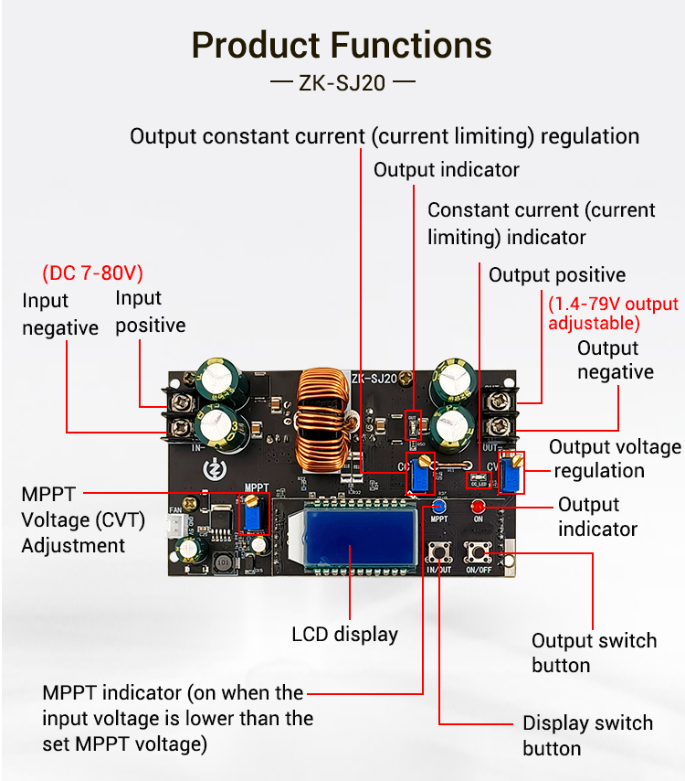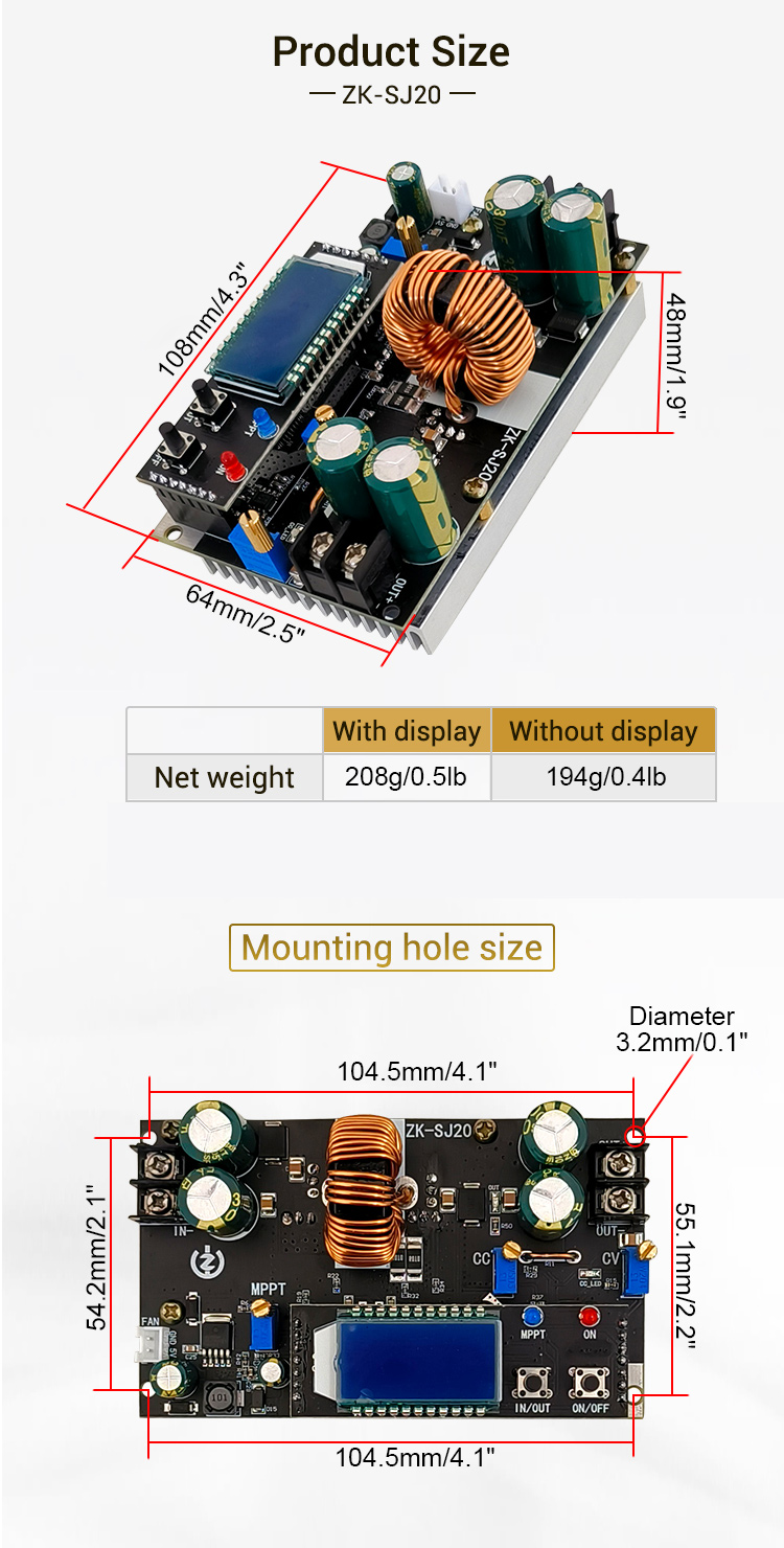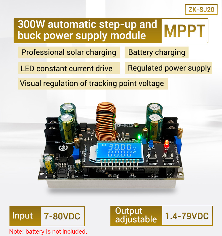 ZK-SJ20 300W Automatic Step up Module Step down Module (with Display) for Solar Panel Charging MPPT