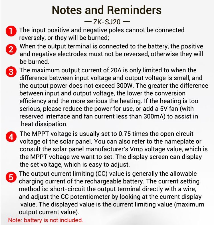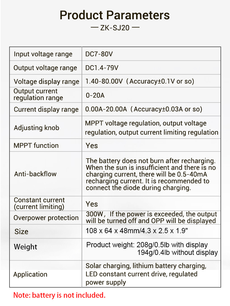 ZK-SJ20 300W Automatic Step up Module Step down Module (without Display) for Solar Panel Charging