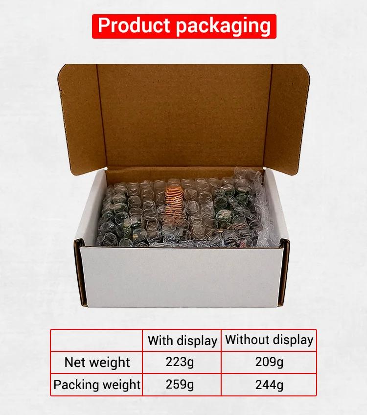 - Net weight: 223g for display version; 209g for display-free version