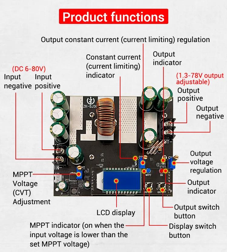 - Application: solar charging, lithium battery charging, LED constant current drive, stabilized voltage power supply