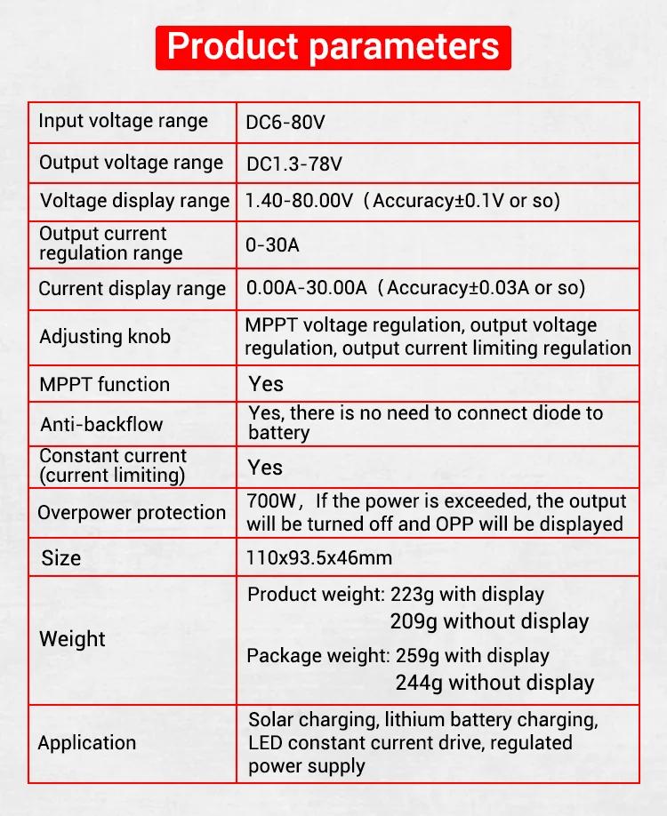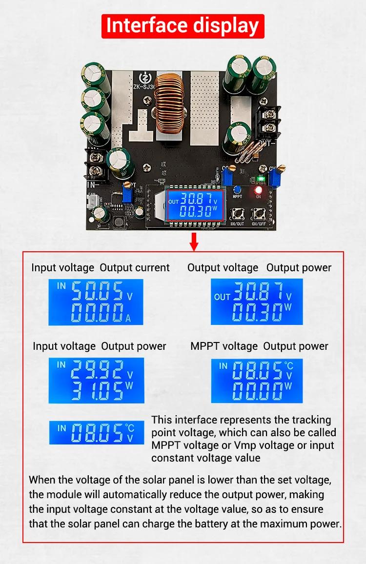 ZK-SJ30 700W Automatic Boost-buck Converter Solar Charging Module MPPT Adjustable DC Stabilized Power Supply with Display
