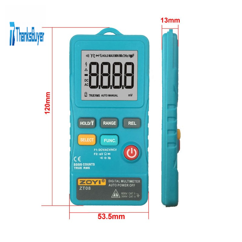 ZOYI ZT08 Ultra-Thin Digital Multimeter Tester 8000 Counts NCV AC DC Voltmeter Automatic Power off