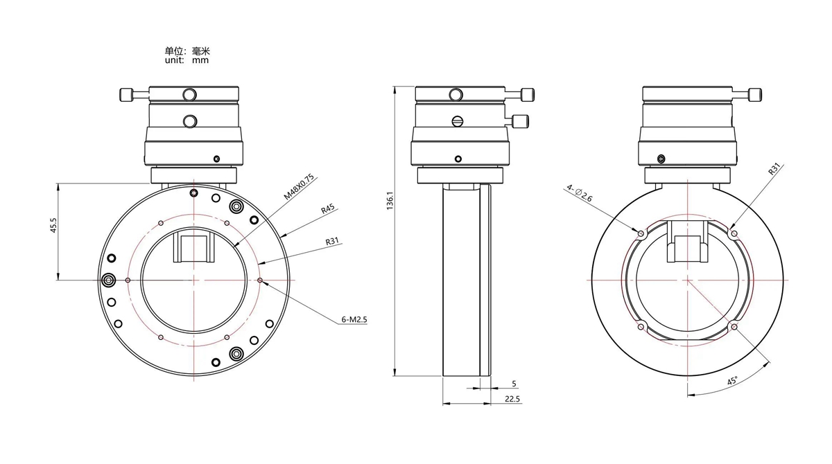 - The standard configuration is M48 connecting ring, and other connecting rings need to be purchased at an additional cost.