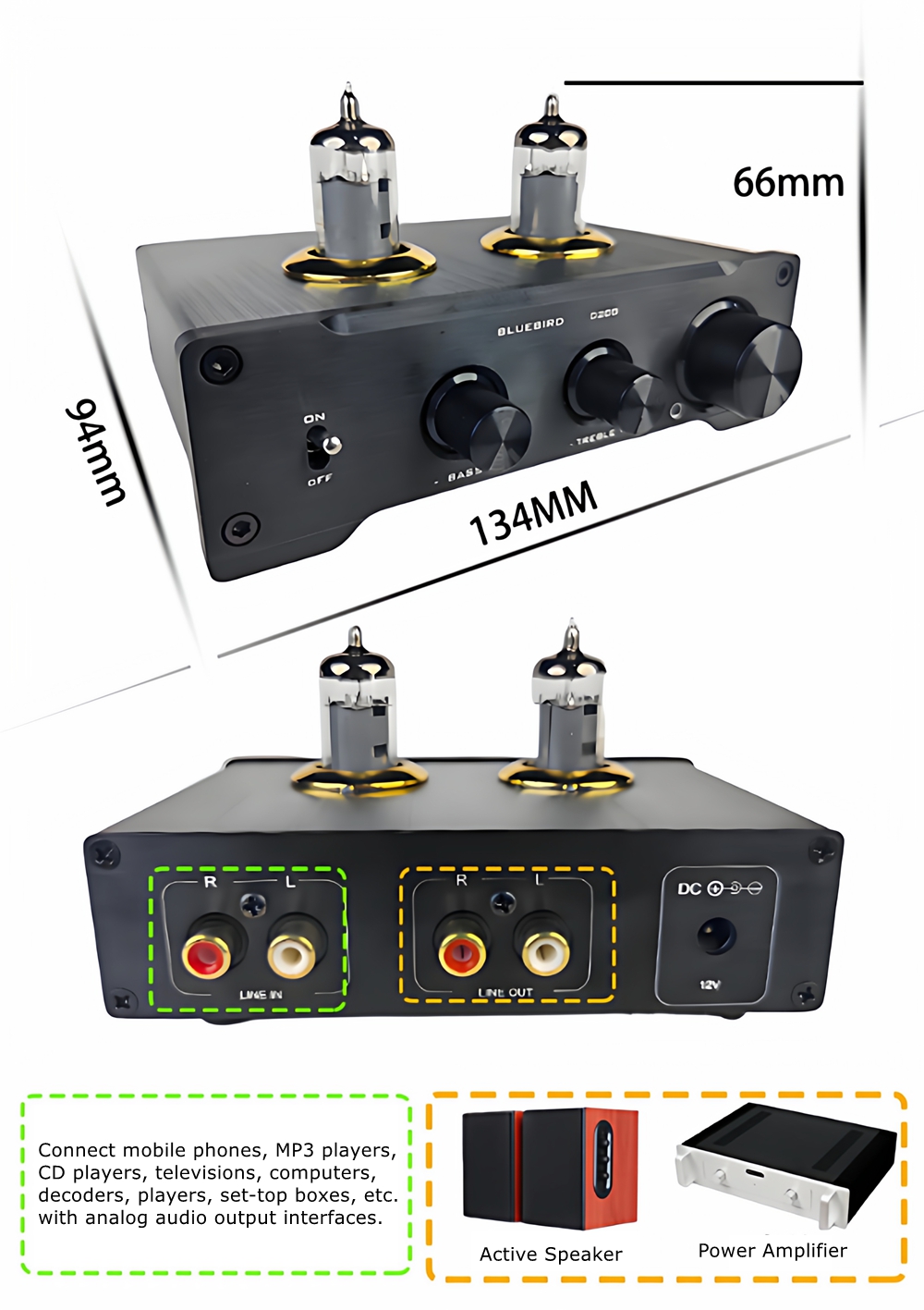 D200 Aluminum Alloy HiFi Electronic Tube Preamplifier 2xNE5532 Operational Amplifier (6J1 Electronic Tube)