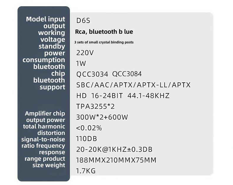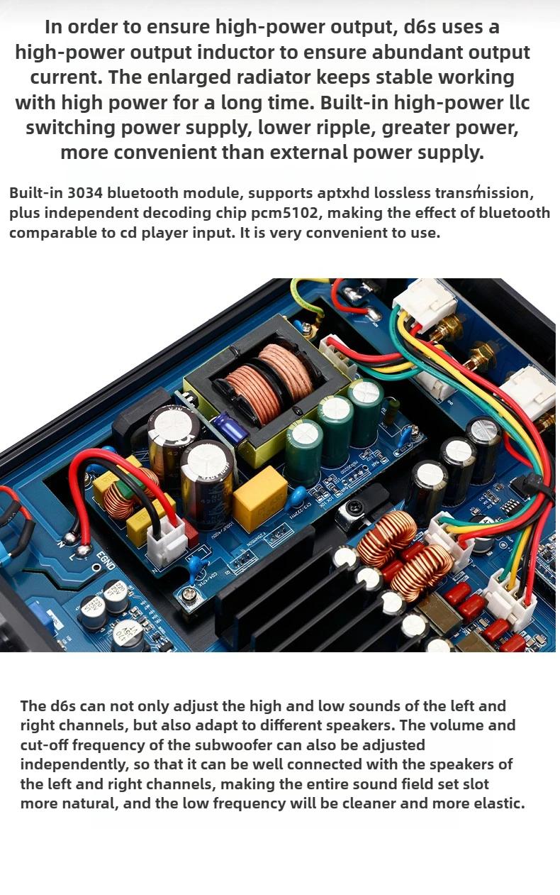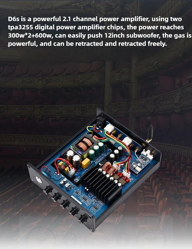 - The D6S is a powerful 2.1-channel amplifier that uses the TPA3255 digital amplifier chip, with a power output of 300Wx2+600W, making it easy to power a 12-inch subwoofer.
