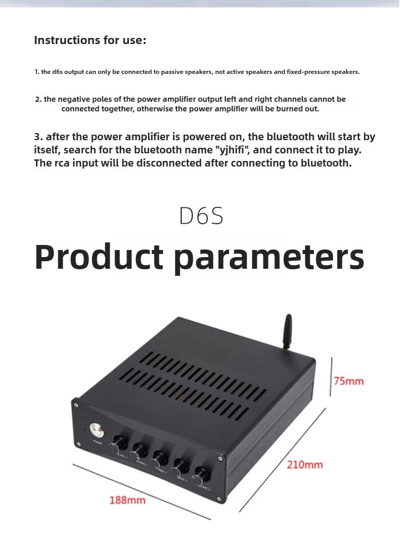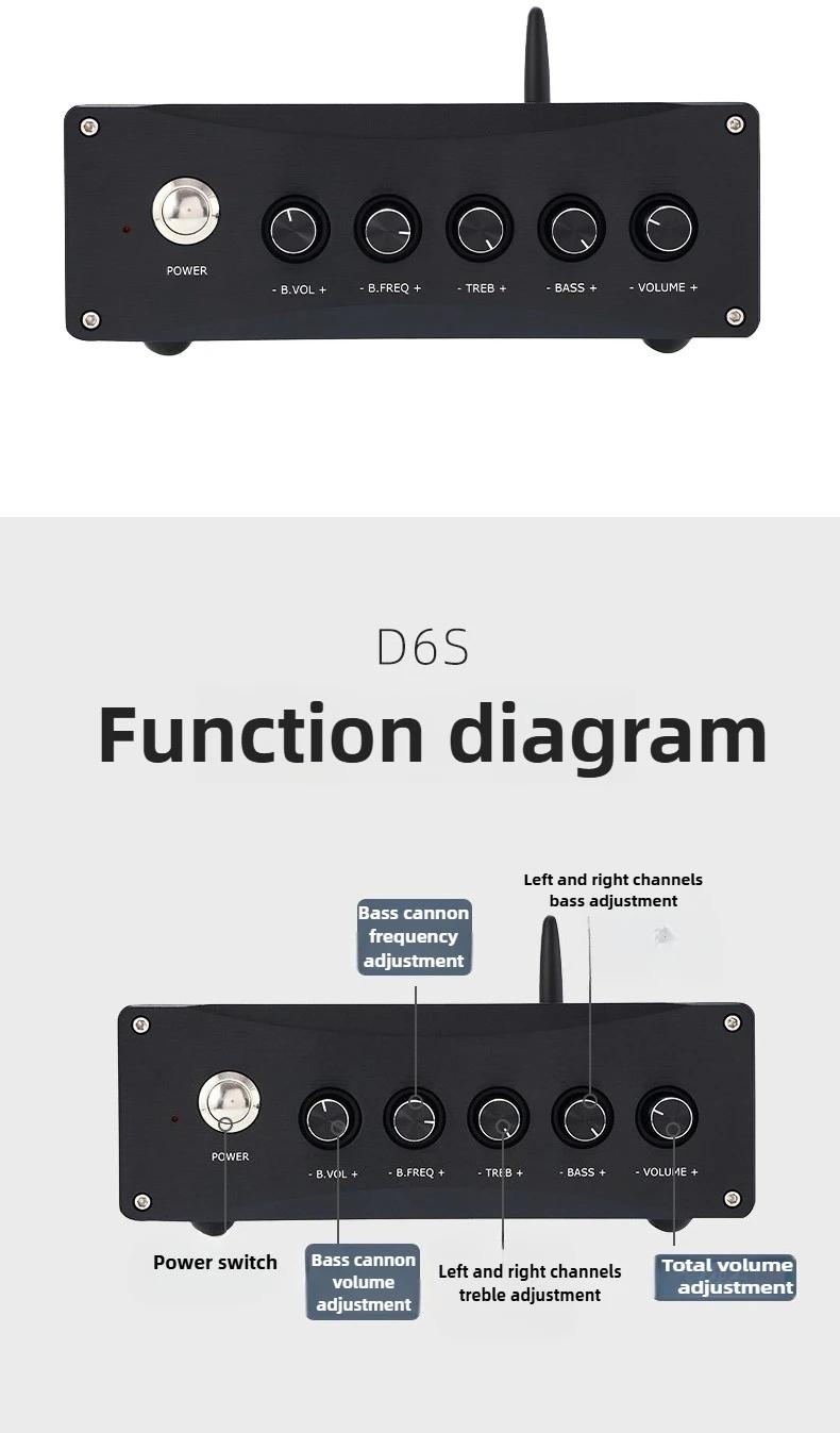 D6S Dual Core TPA3255x2 High Power 2.1 Channel Digital Power Amplifier 300Wx2+600W (QCC3034 Bluetooth5.1)