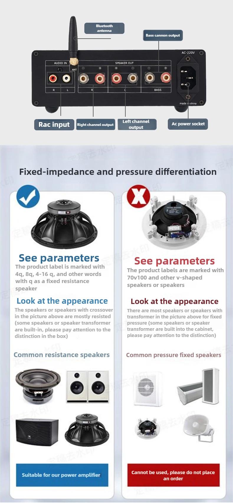 - The negative terminals of the left and right channels of the amplifier output cannot be connected together, otherwise it will cause the amplifier to burn out.