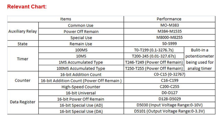 2.This PLC is built-in 1 analog value input AD,and it corresponds with internal data register D5030 (not D8030)