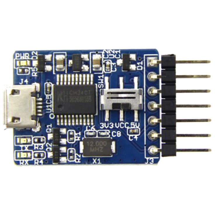 USB To Uart 5V/3.3V is a USB to serial adapter, which is base on CH340,CH340 is a USB bus convert chip and it can realize USB convert to serial interface, USB convert to IrDA infrared or USB convert to printer interface. this module is compatible with 5V and 3v3. And it can used for upload code or communicating with MCUs.