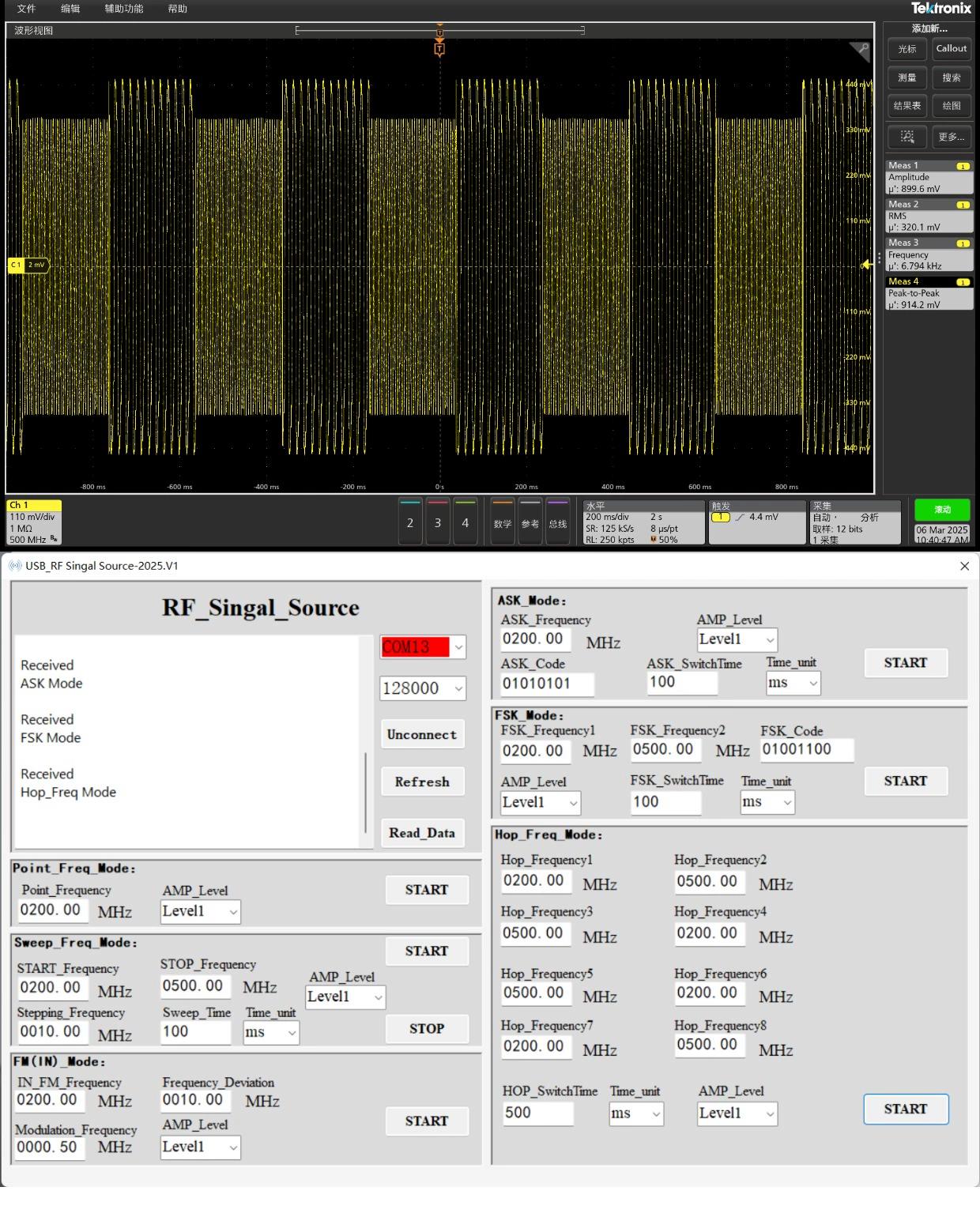 - ASK_Frequency =500MHz, Level =4, ASK_SwitchTime = 500ms