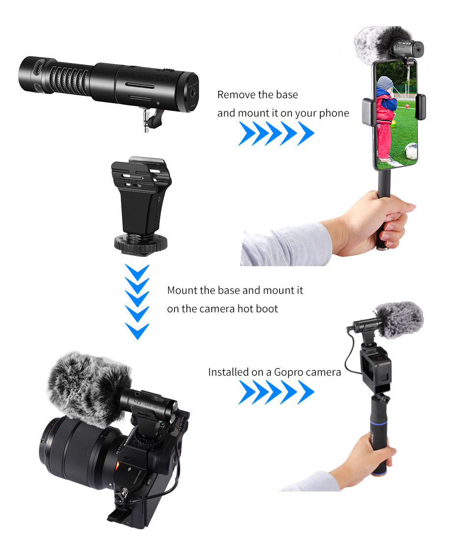MAMEN MIC-07 Pro Video Record Microphone Vlog Photography Mic Black for Smartphone DSLR Camera