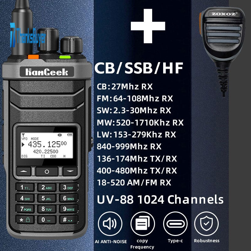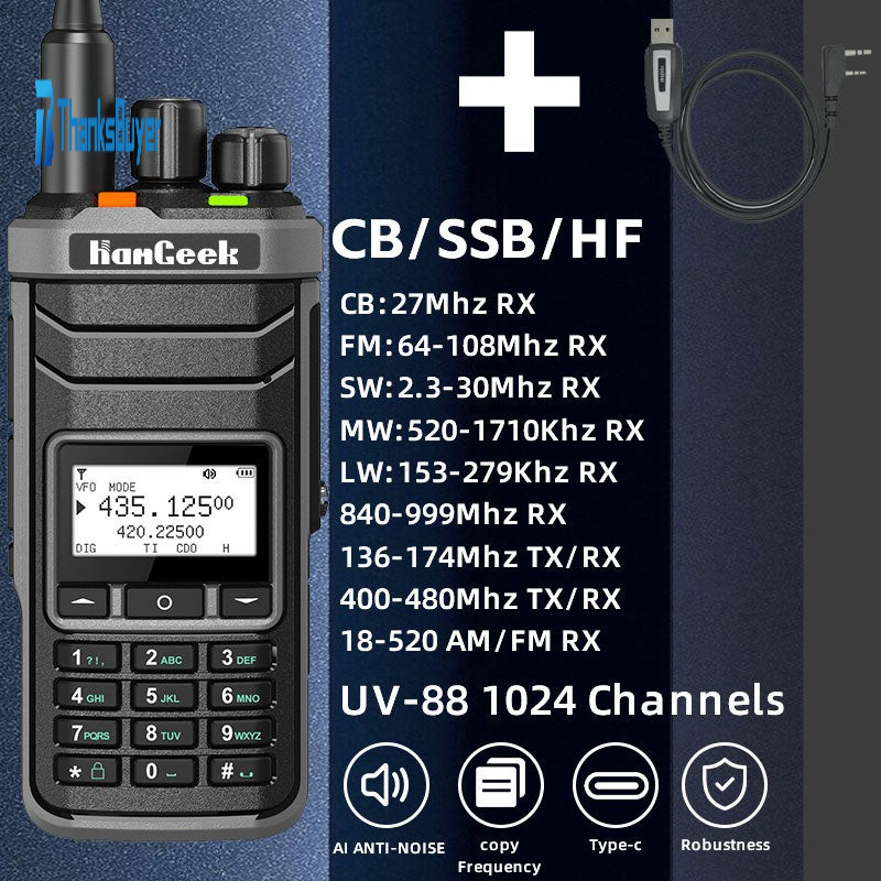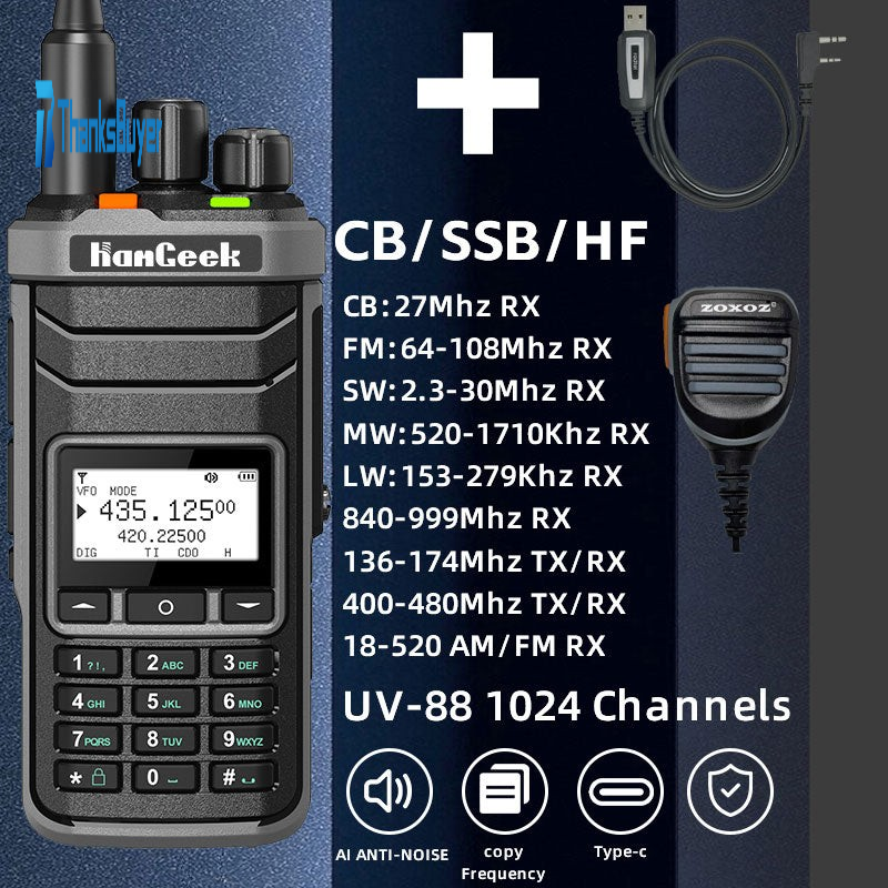 HamGeek UV-88 1024 Channels + 2 VFO Channels Walkie Talkie Handheld Transceiver + Programming Cable + Hand Mic
