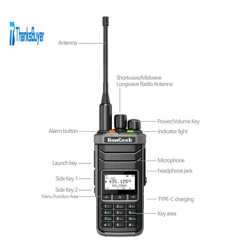 * Frequency Range: FM 64-108MHz, SW 2.3-26.1MHz, MW 520-1710KHz, LW 153-279KHz, RX 18-520MHz and TX 136-174MHz 400-480MHz
