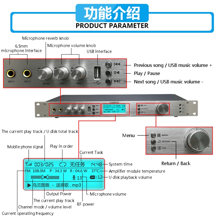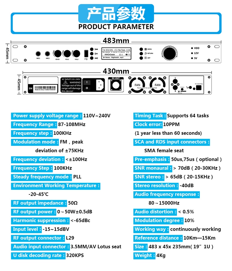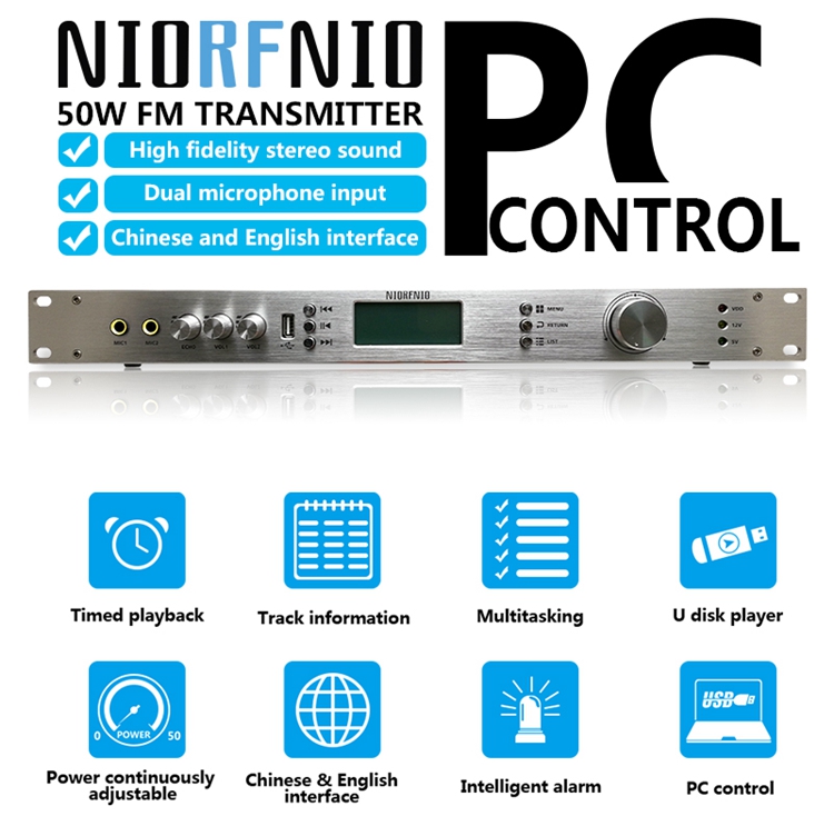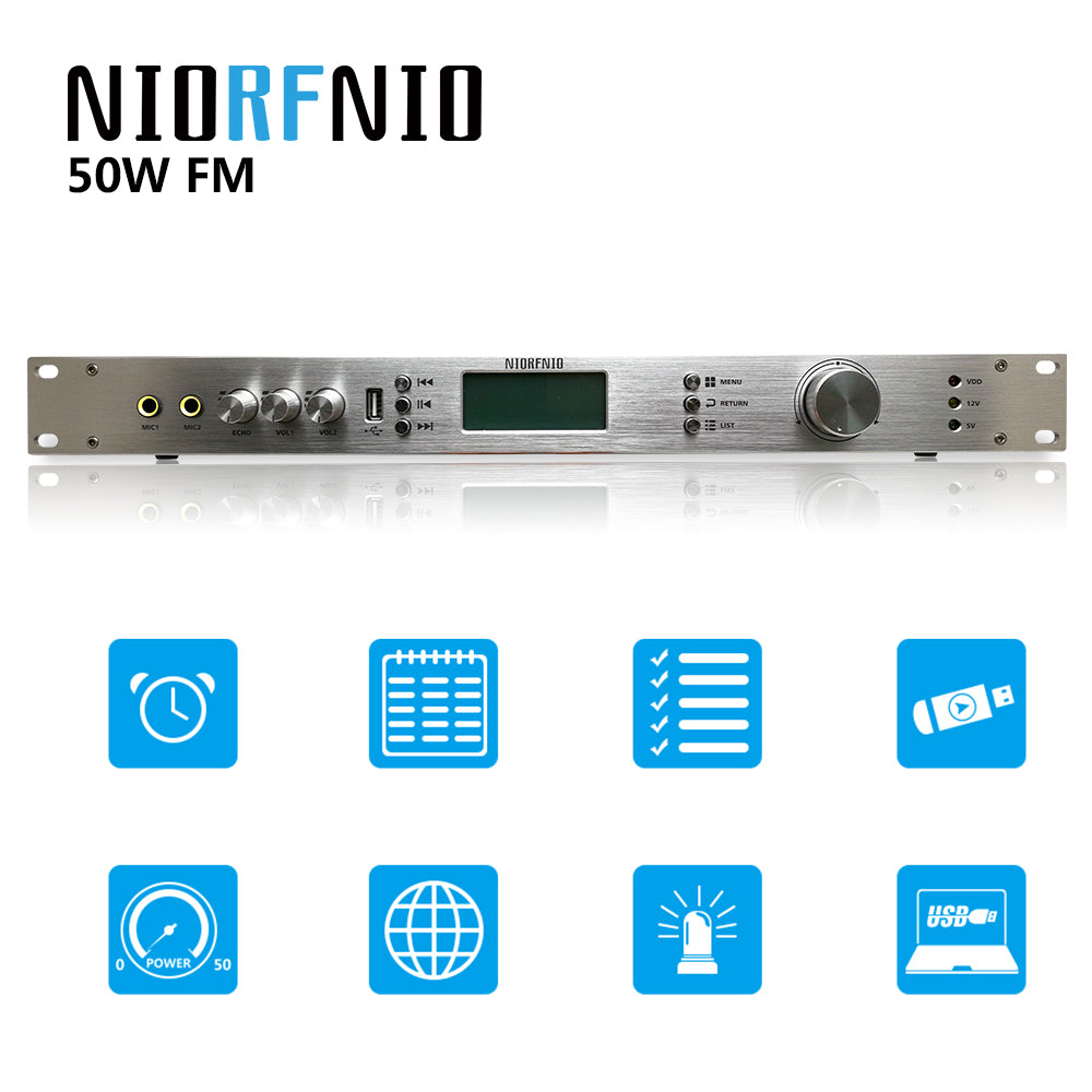 0-50W FM Broadcast Transmitter Adjustable Output Power for Broadcasting 87-108MHz T50M