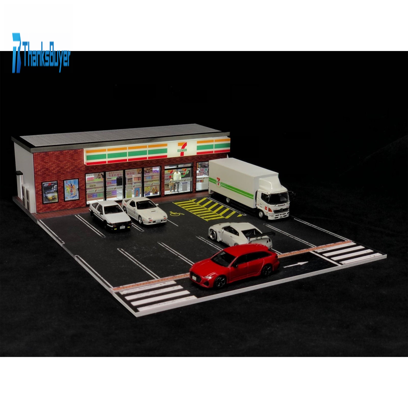1:64 Building Model 711 Convenience Store Parking Lot and Streetscape Display Model with USB Switch Light