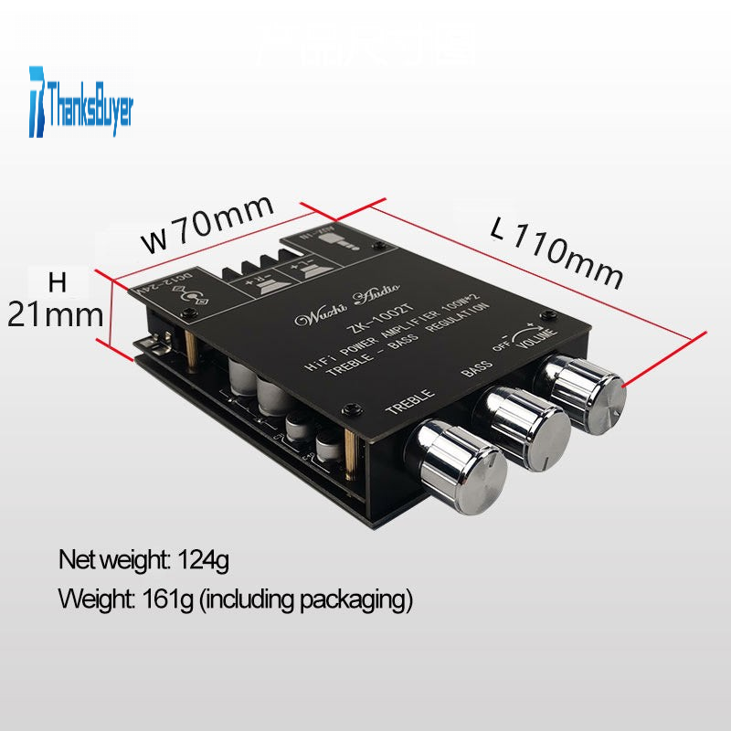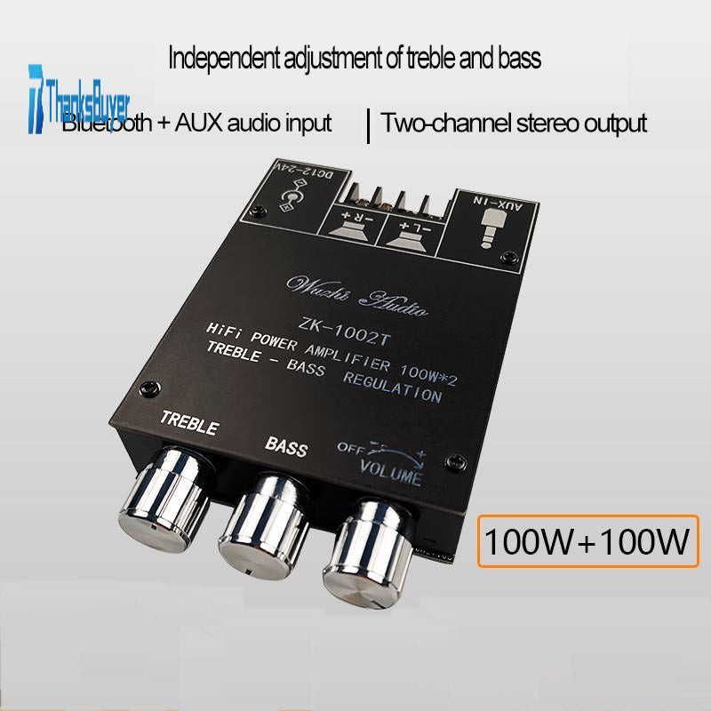 100W*2 Bluetooth 5.0 Amplifier Board 2 Channel Stereo Amplifier Treble Bass ZK-1002T Unassembled