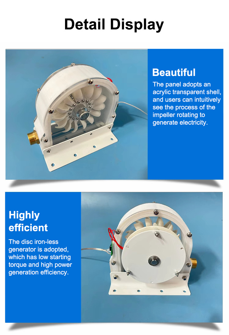 - Beautiful: The panel adopts an acrylic transparent shell, and users can intuitively see the process of the impeller rotating to generate electricity