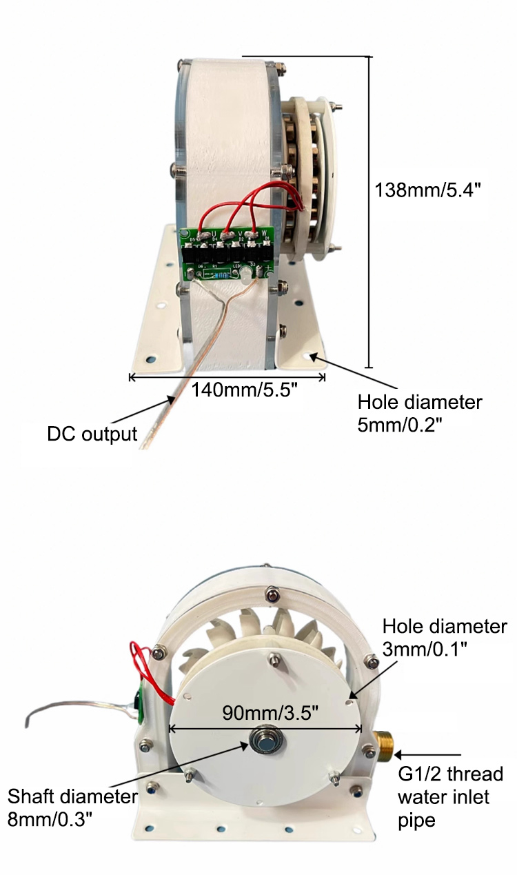 100W 50-2000RPM Pelton Hydro Generator Impulse Hydroelectric Generator Disc Iron-less Generator