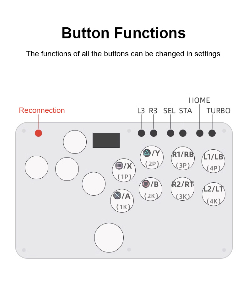 * Buttons: Turbo, Home, Select, Start, L3 and R3