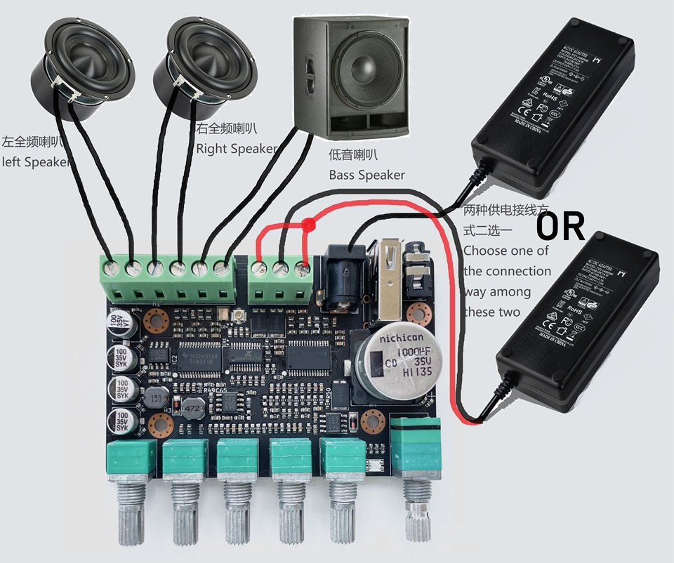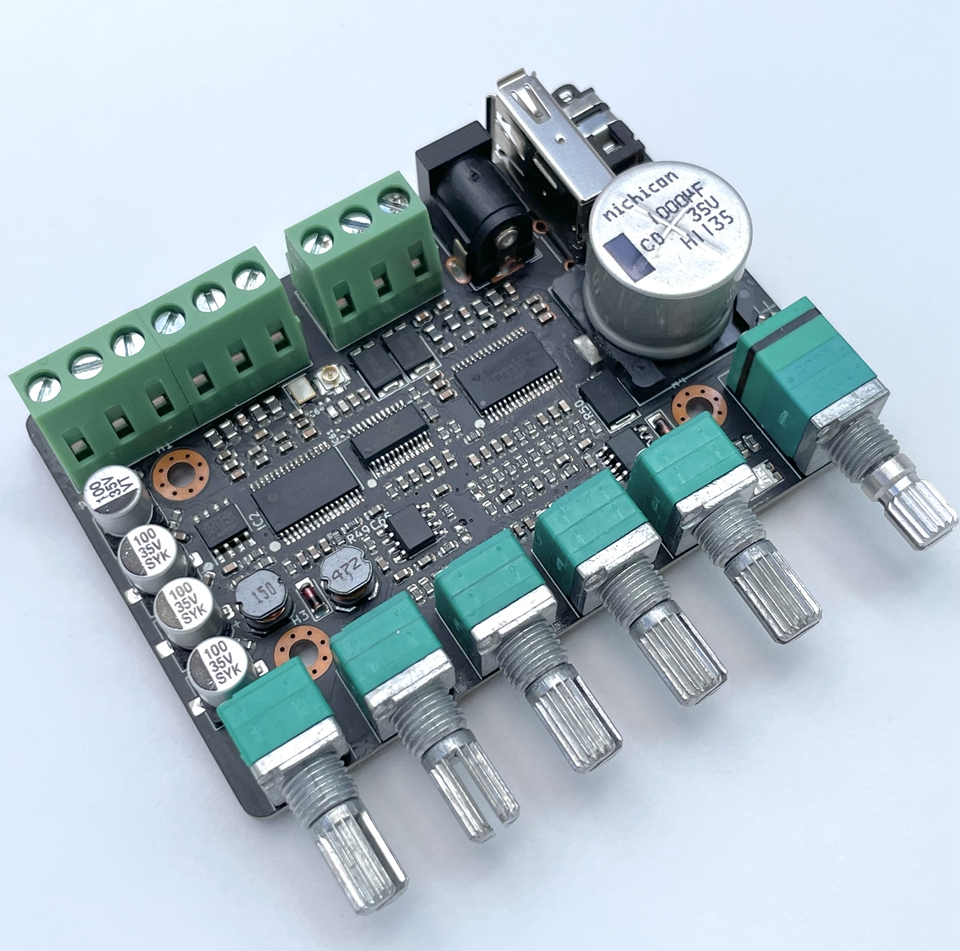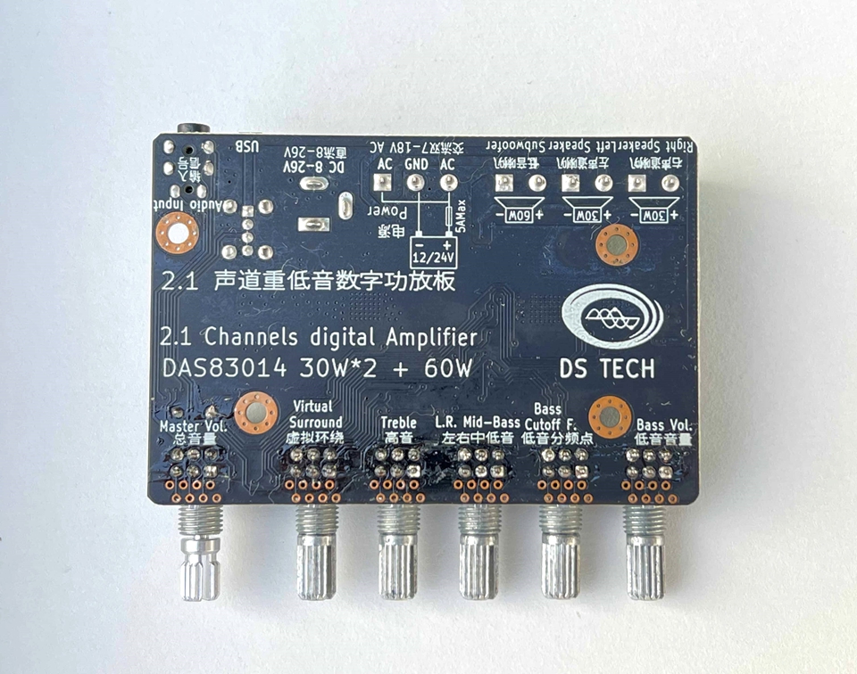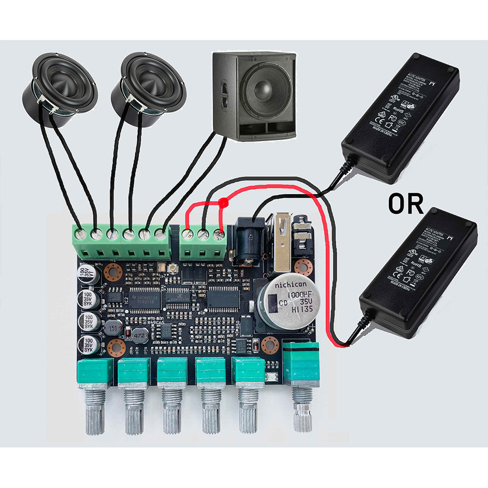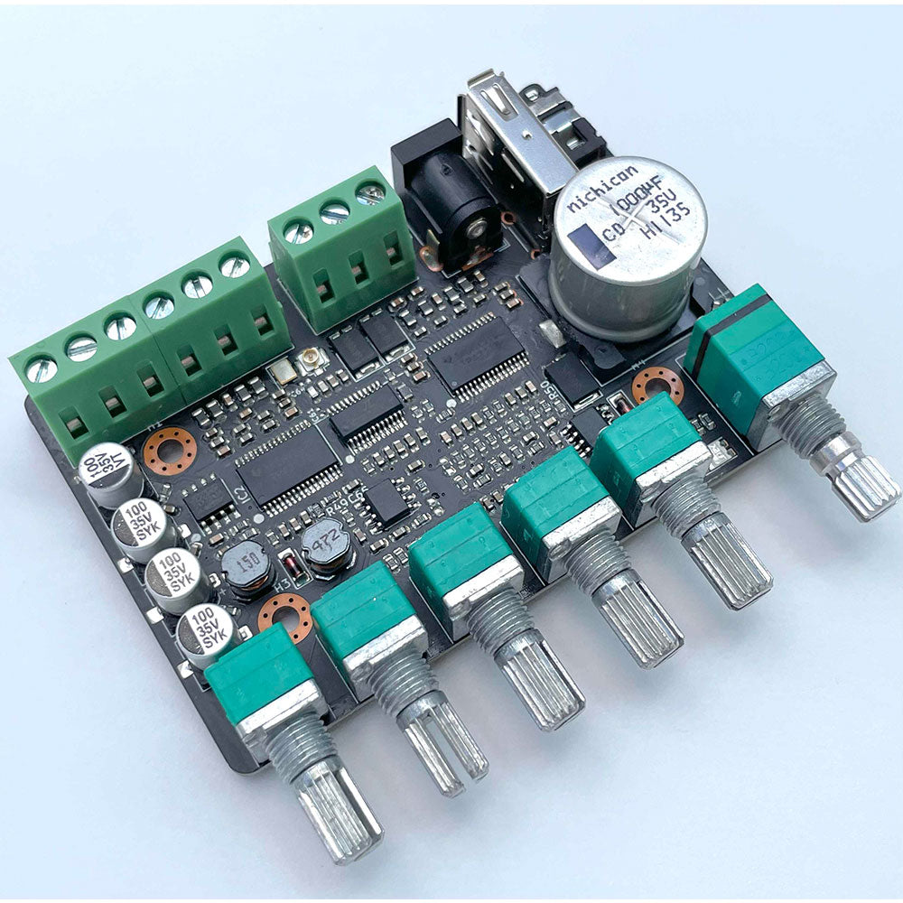 - The powerful output power and advanced audio adjustment function of this amplifier can work well with various types of 2.1 Audio speaker systems and yield a superior audio playback quality. With virtual surrounding feature based on analog circuit, a surround effect can even be produced in between of two closely placed speakers. The excellent small form-factor design and optimized panel layout enables it to be embedded in various sound system designs.
