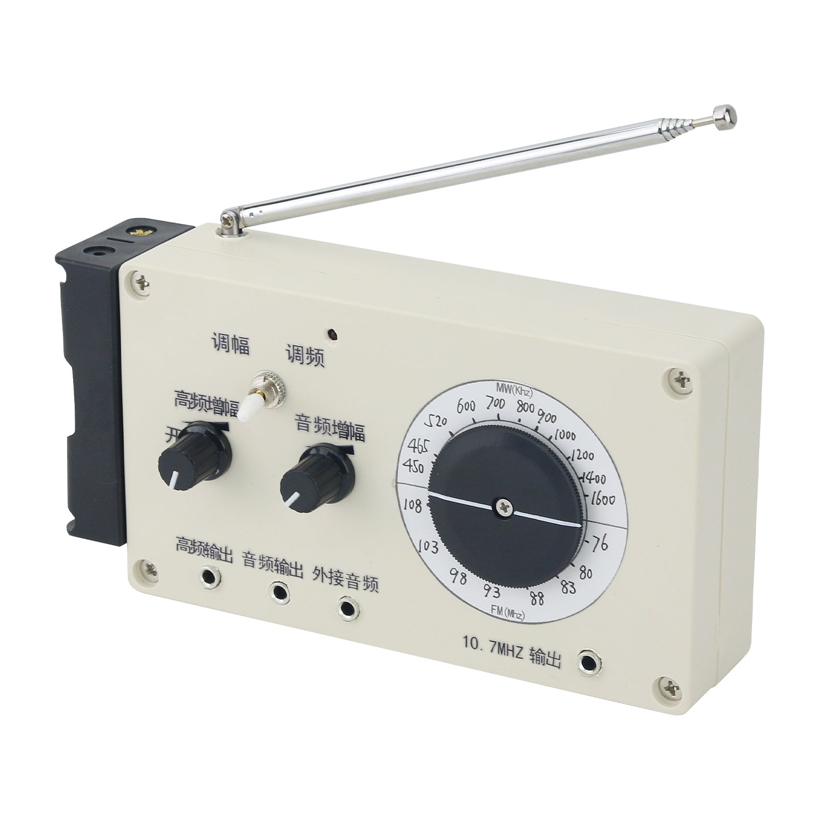 The FM range is about 76-108MHZ and and there is a separate 10.7MHz IF signal output. The AM medium-wave frequency range is 400kHz-1650kHz, including the intermediate frequency 465kHz.