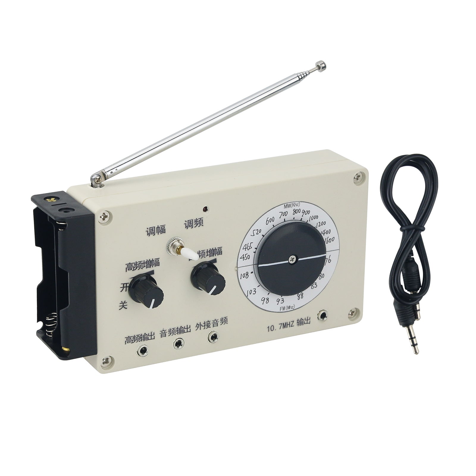 4. The audio input port can input audio signal. Rotate the LF amplification knob to adjust input signal appropriately. Both FM and AM bands can receive signals.
