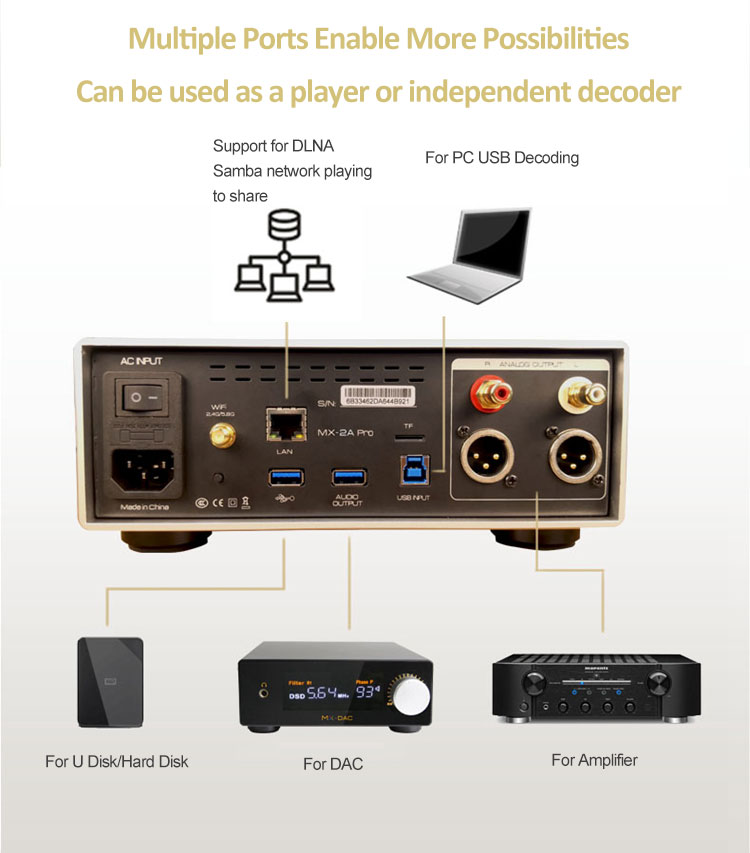 - USB input decoding supports 32Bit/384KHz & DSD256 Native