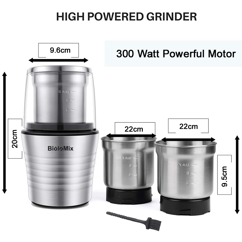 2-In-1 Electric Coffee Grinder Spice Grinder 300W w/ 2 Stainless Steel Blade Removable Bowls BCG300
