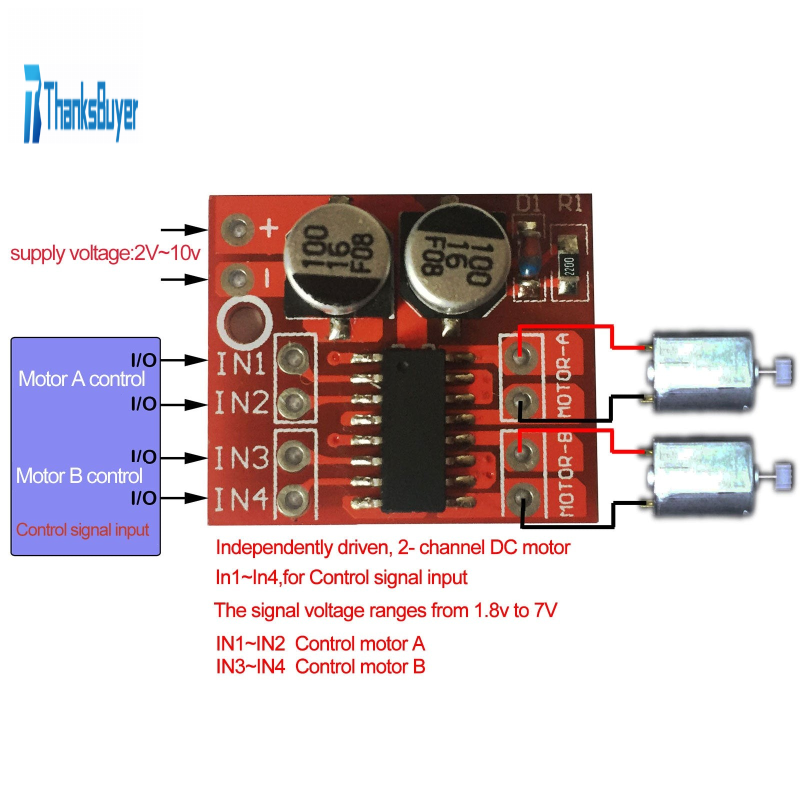 - Built-in anti-common state conduction circuit, when the input terminal is floating, your motor will not malfunction