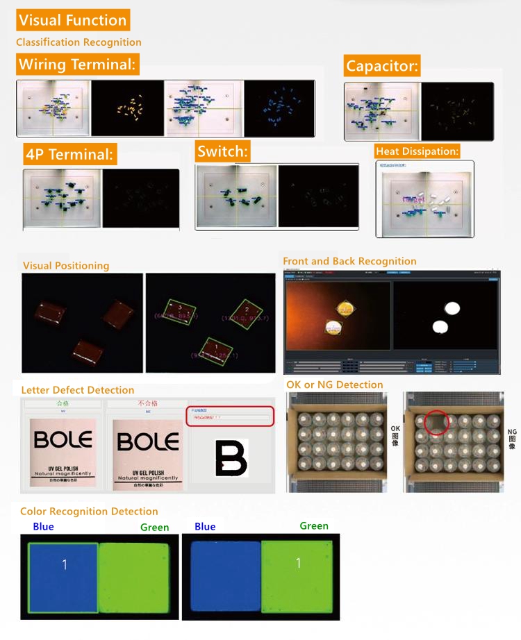 - The control protocol can also support for OPENMV, USB and other cameras to develop visual scenes, interact visually, identify object sizes and positions for transportation (requiring self-developed upper computer), and connect external devices, which can be used for small-scale industrial production.