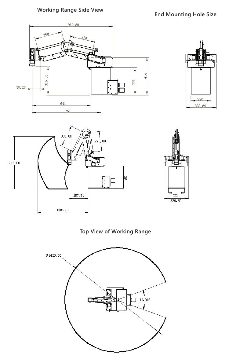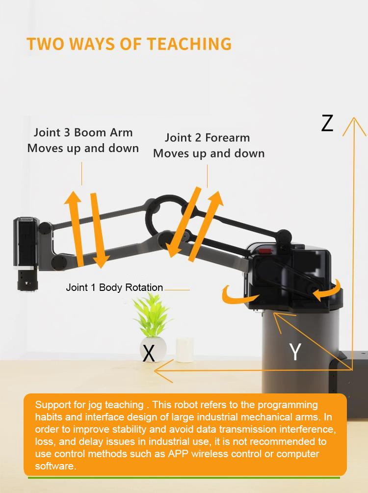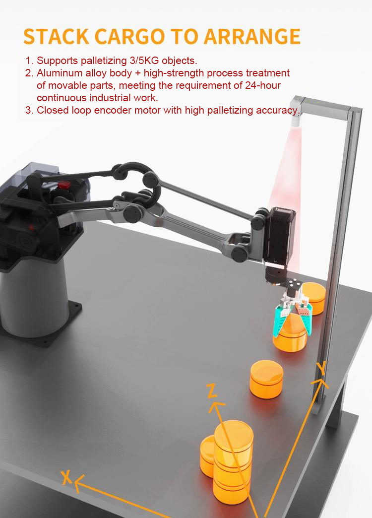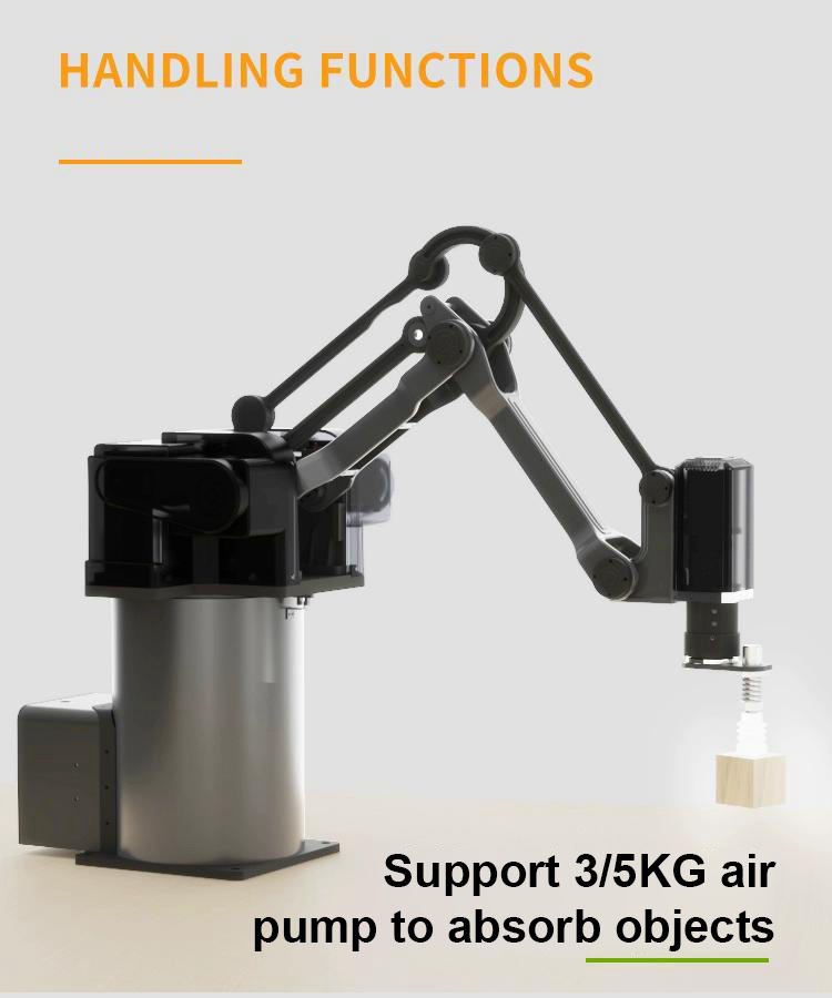 - This is the 3-axis mechanical arm with 5KG payload capability, please contact our customer service to get the purchase link if you need the 4-axis mechanical arm with 3KG payload capability.