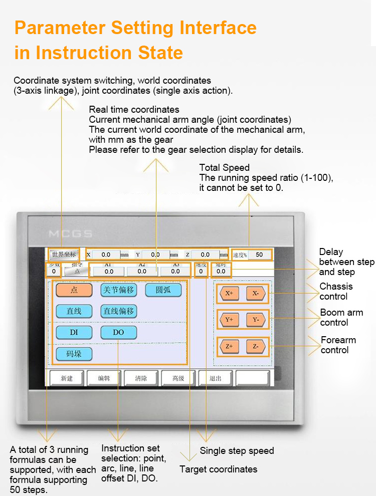 The functional instructions of the mechanical arm are as follows: