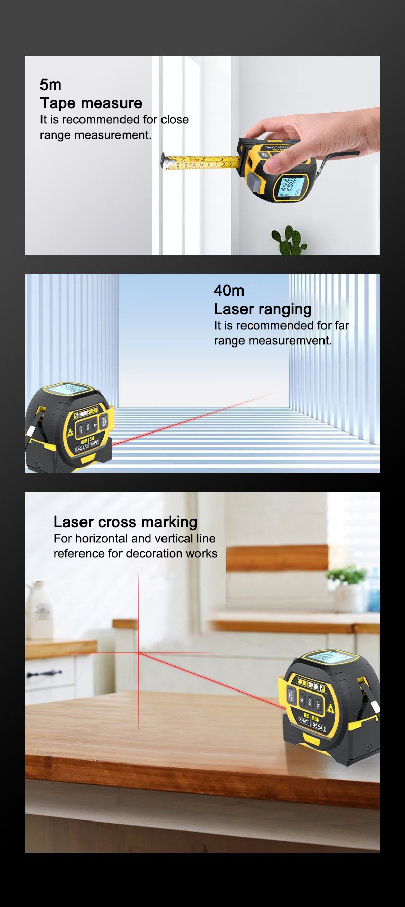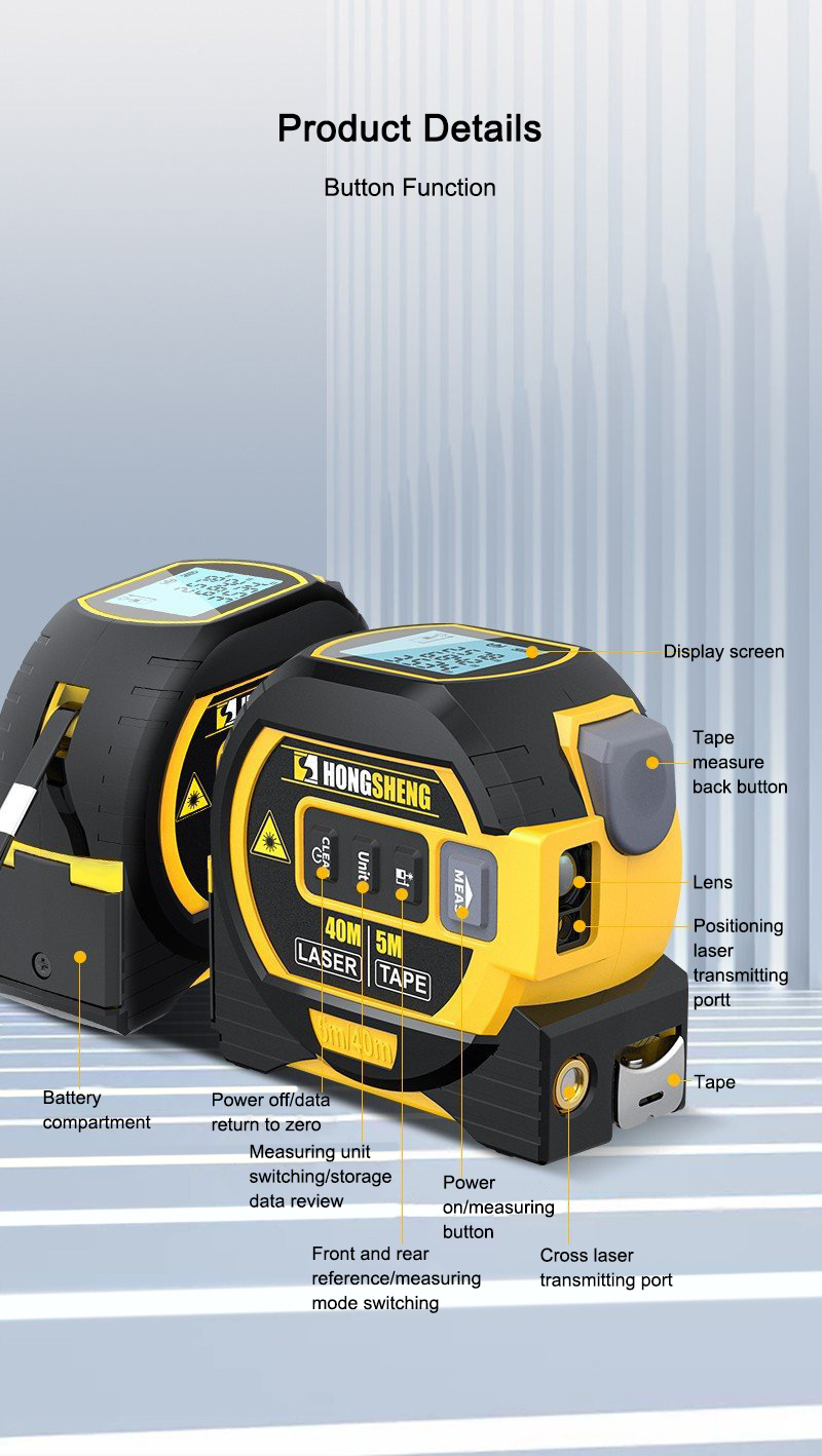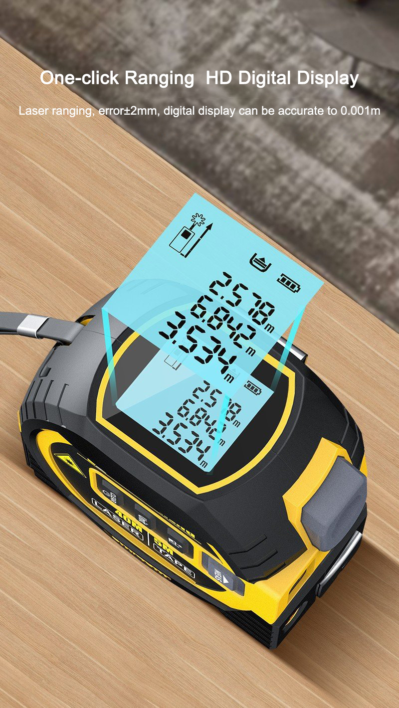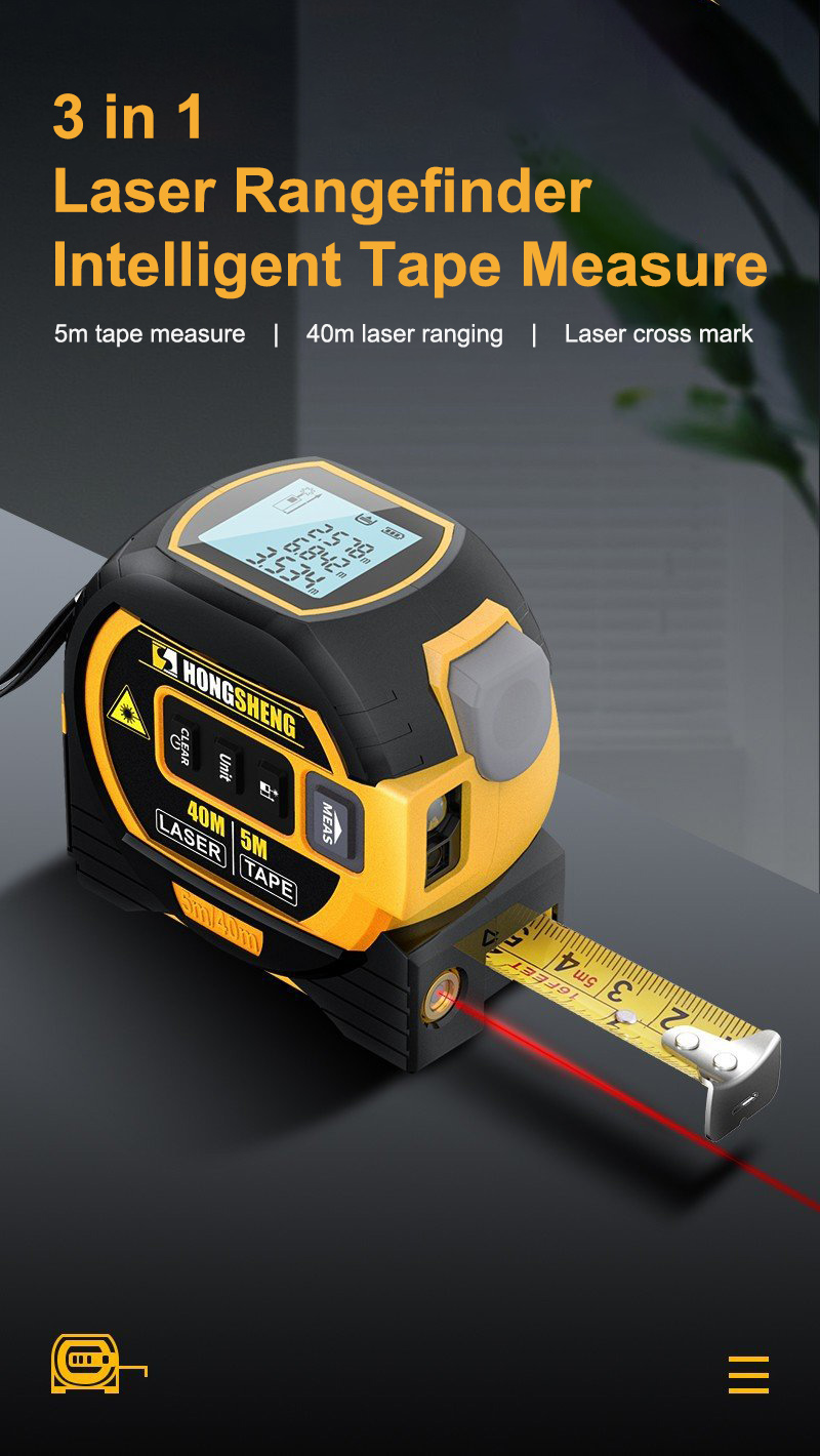 3 in 1 Handheld 5M Tape Measure 40M Laser Rangefinder Intelligent High Precision Rangefinder with British and Metric Unit