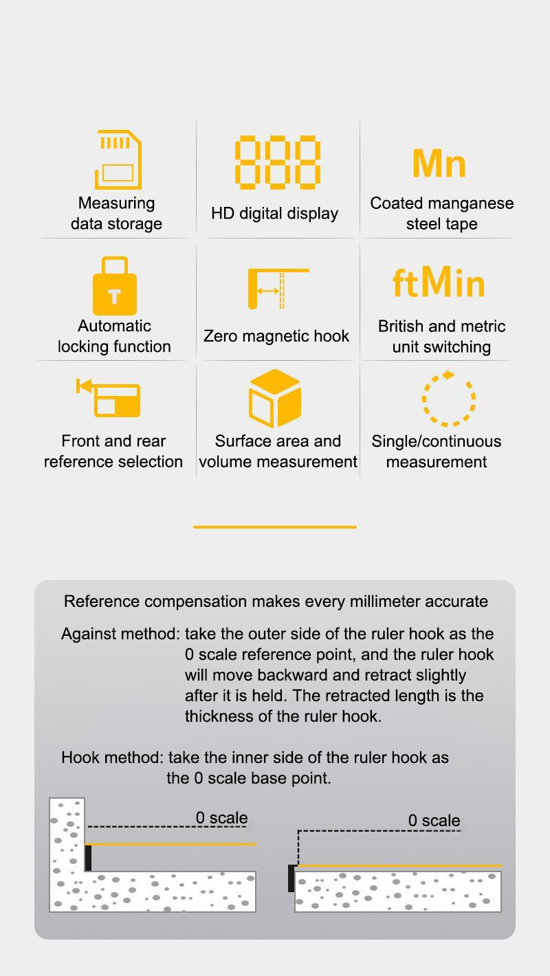 - Tape material: 65 manganese steel