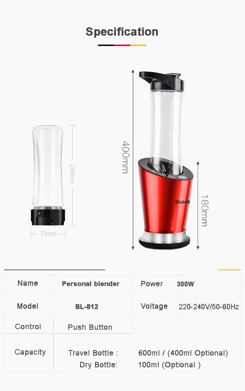 This powerful 300W motor is up to the task of blending fresh foods and ice for all your favorite drinks.Whether it's an on-the-go breakfast or a mid-afternoon snack, the Biolomix Personal Blender makes just the right amount.