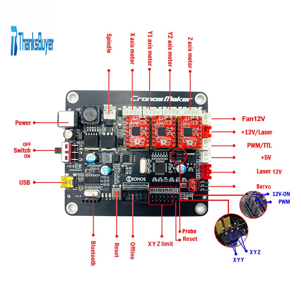 - Its spindle supports PWM 0-100% adjustable power