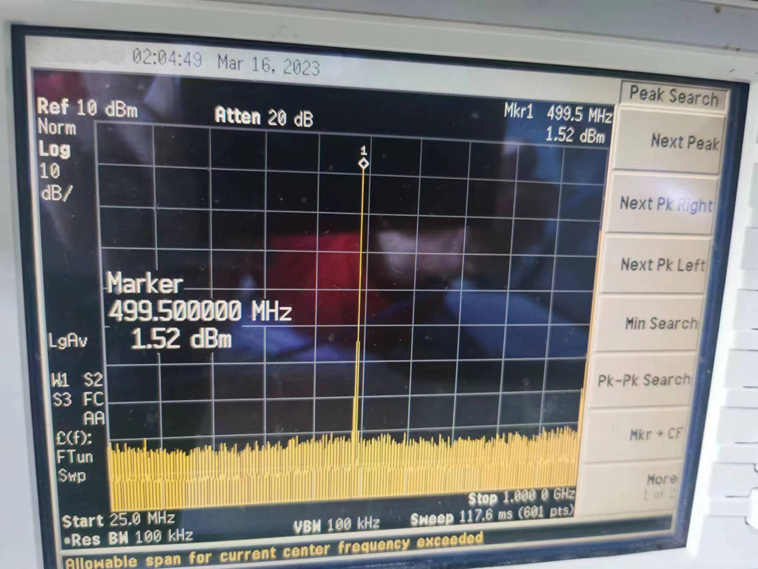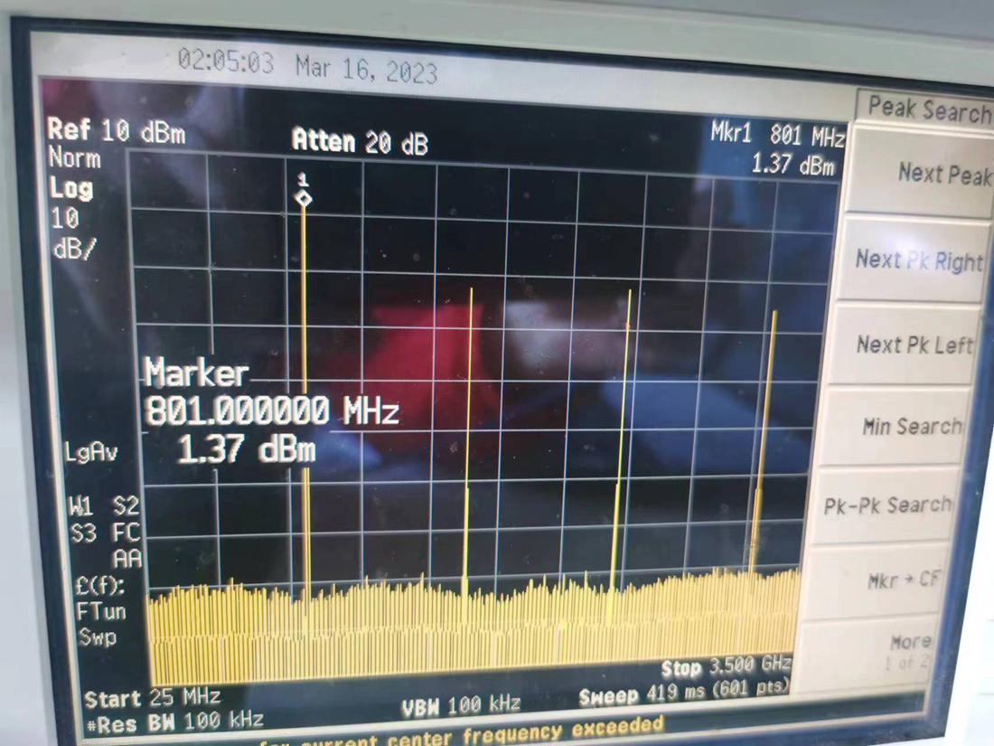 The module test data is as follows. The output is connected to a 40dB attenuator, and a 28V power supply and a spectrum analyzer are used for testing.