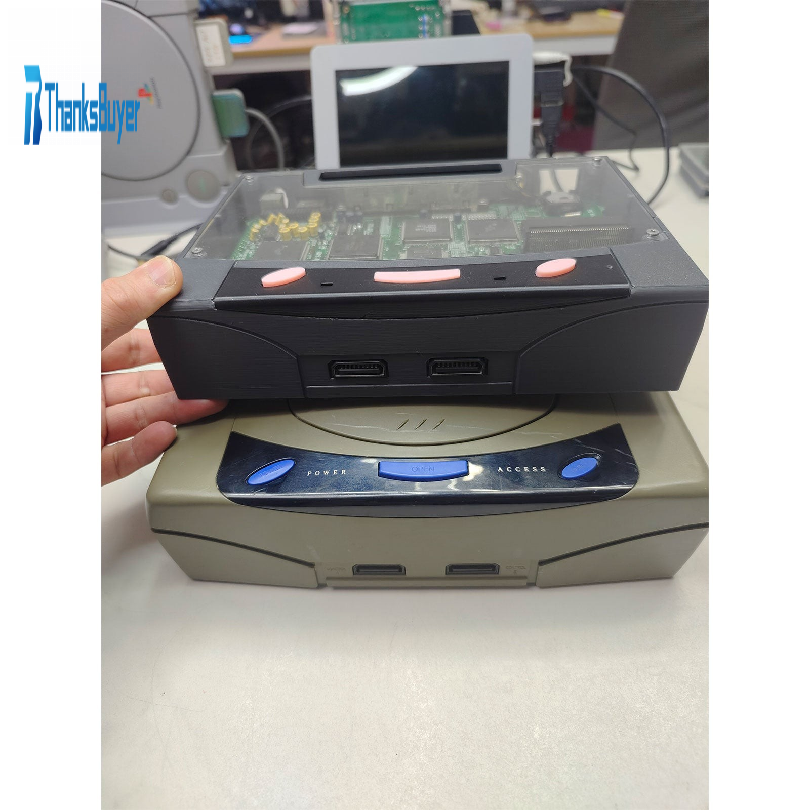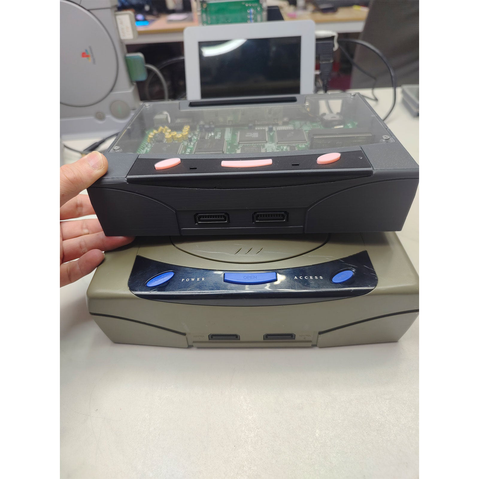 3D Printed Mini Game Console Saturn Game Console with 2 Lights (3 Pink Buttons) for SAROO HDLoader
