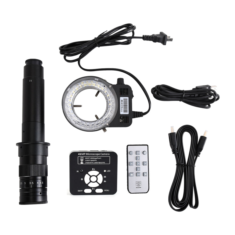 41MP USB Microscope Camera HDMI 1080P 300X C-Mount Lens w/ 56 LED Ring Light For Phone PCB Soldering