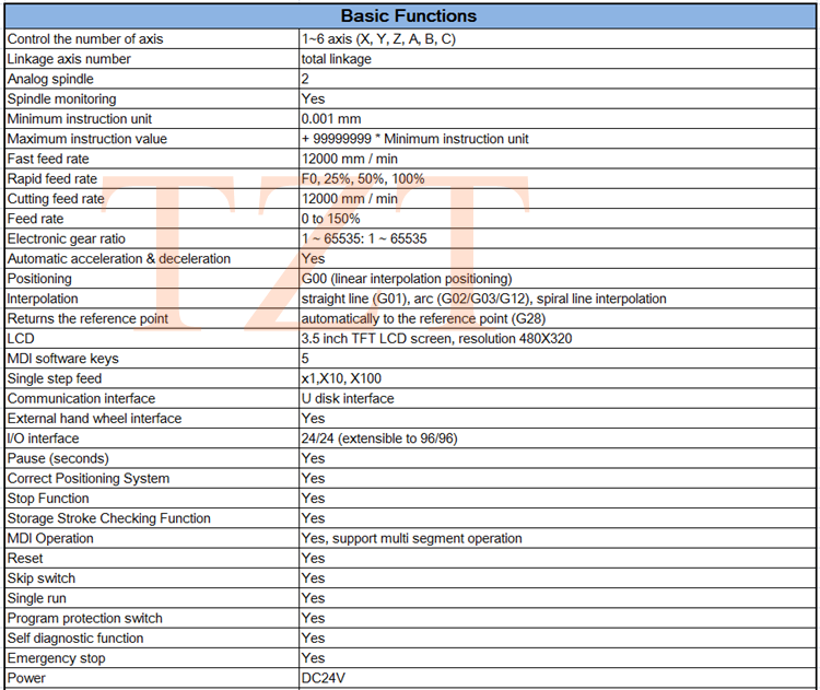 - 40 kinds of G instruction that support drilling cycles, tapping cycles.