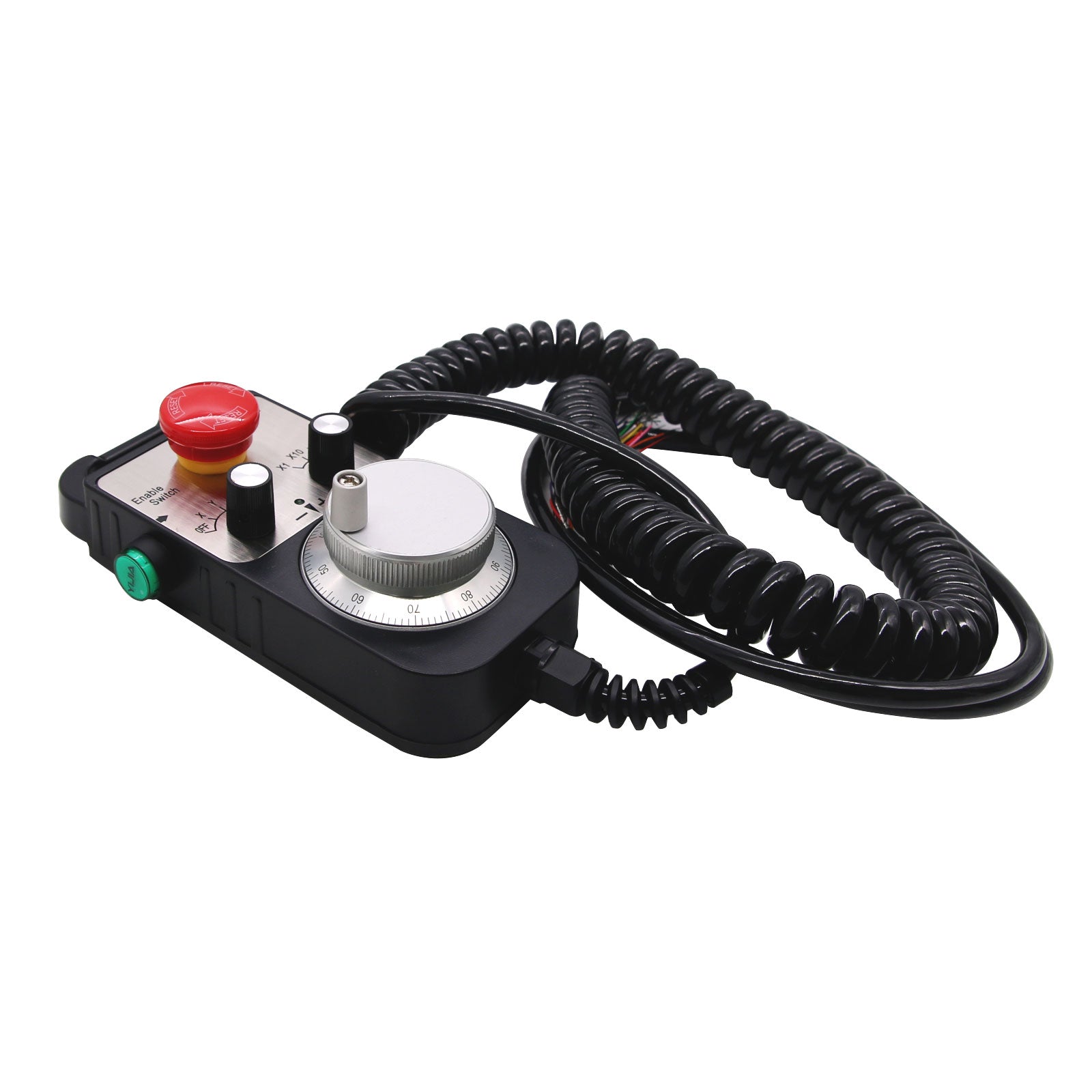 - The CNC 4 Axis handheld controller MPG Pendant with x1, x10, x100 selectable. You are bidding one complete unit of the MPG pendant with Emergency stop for 4 axis CNC machine, it equipped with our popular machined MPG unit with 4 axis and scale selector, LED indicator also send feedback from the CNC machine to user about the status of the unit.